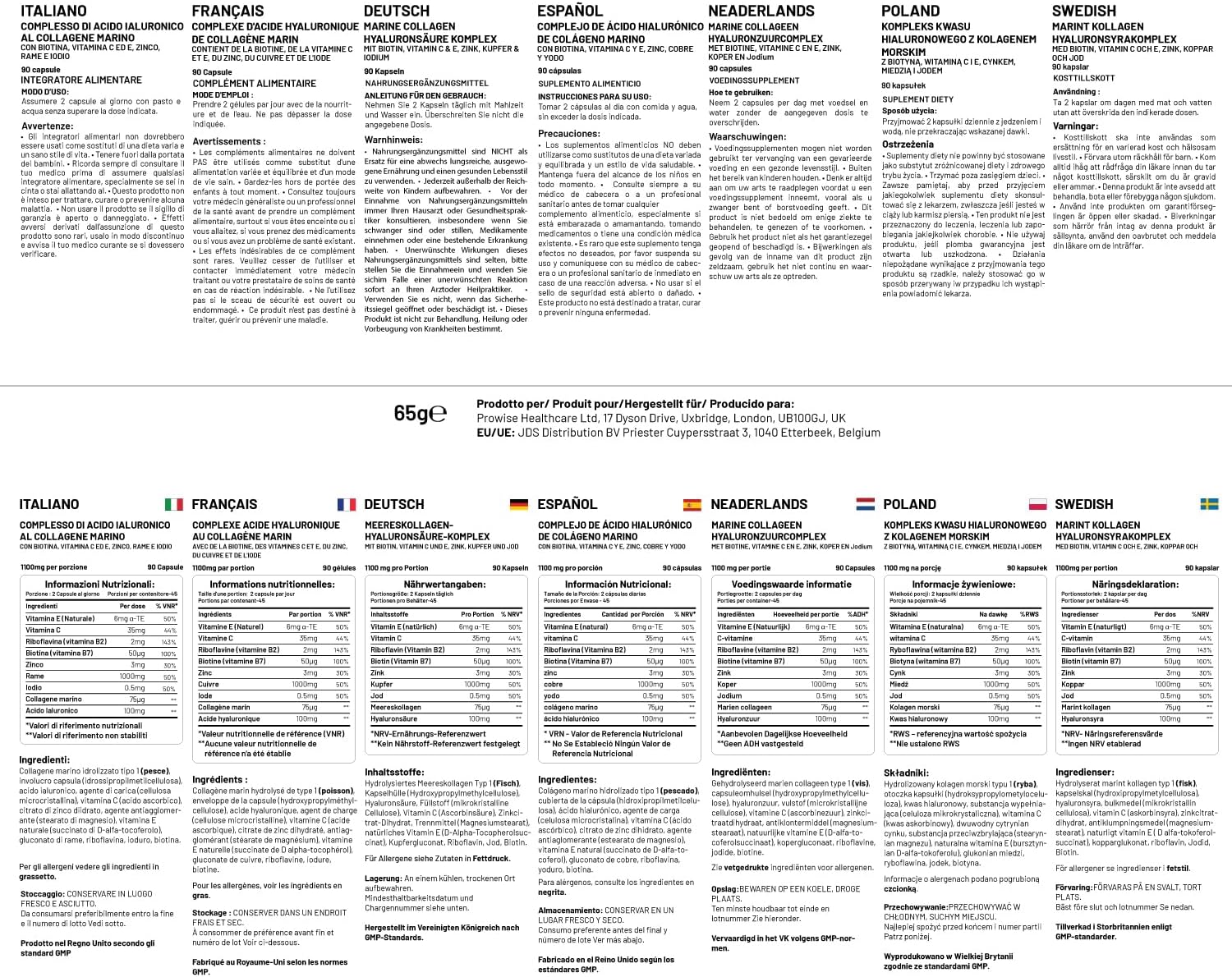 Marine Collagen With Hyaluronic Acid 1100Mg - 90 Capsules Boosted With Hyaluronic Acid, Vitamins C, E, B2, Biotin, Copper, Zinc And Iodine | For Women And Men | Made In The Uk By Prowise Healthcare