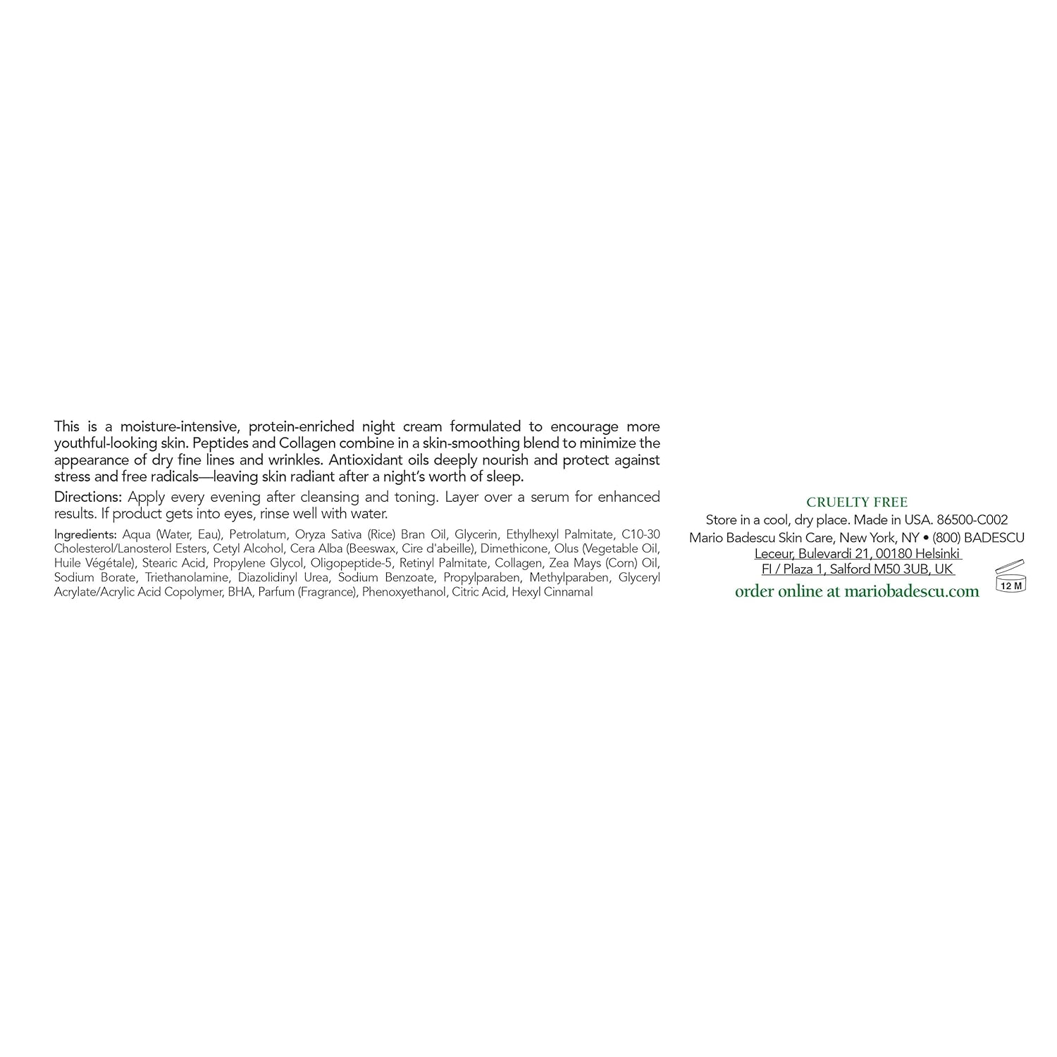 Mario Badescu Protein Night Cream For Dry And Sensitive Skin, Anti Aging Face Cream With Peptides, Collagen & Vitamins A & E, Reduces Wrinkles, Face Moisturizer For Women And Men, 1 Oz