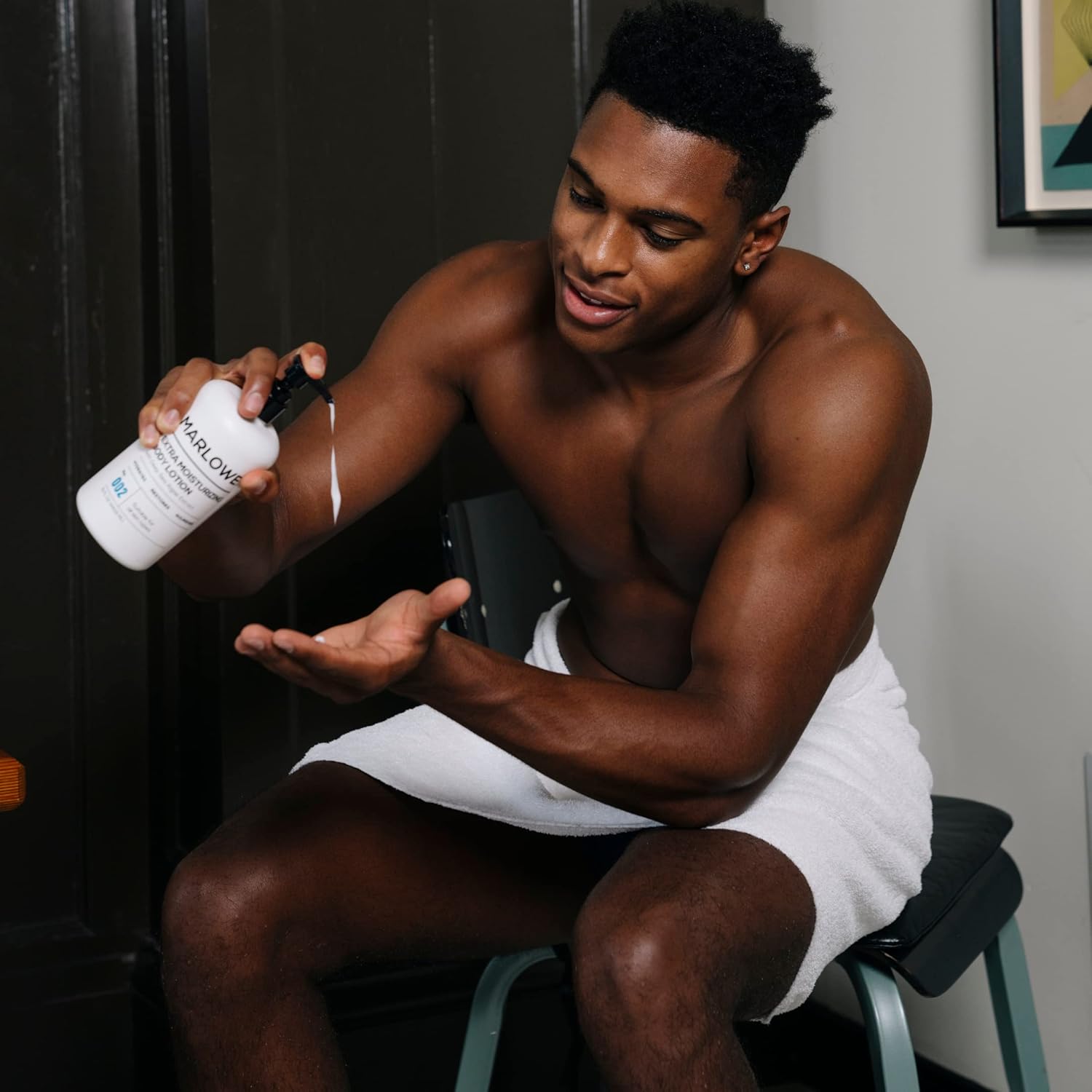 About this item Hydrates, Restores, Nourishes: Combat dry skin effortlessly with our moisture-locking formula. Add this intensive moisturizer to your daily grooming routine for softer, more hydrated skin. Absorbs quickly, helping restore overly dry skin, without any greasy residue Nurtures, Smooths, Revitalizes: Start and end your day with this moisturizing body lotion, crafted with a blend of Aloe Vera and Amino Acids to revitalize dry skin. For softer skin, apply generously to hands and body twice daily Our Original Signature Scent: This rich hydrating body lotion for men and women has an earthy blend of crisp sage and fir, with subtle notes of pine and warm agarwood. Fresh, woodsy and perfectly balanced Purposeful, Clean Products: MARLOWE. products are vegan, formulated without parabens, phthalates, gluten, SLS & SLES. Never tested on animals. Made in the USA with globally sourced ingredients Elevated Everyday Essentials?: MARLOWE. creates personal care and grooming products that give you what you need. Great smelling and hard working, designed for those who value simplicity, quality, and practicality.? Be confident, be clean, be yourself › See more product details,Hydrates, Restores, Nourishes: Combat dry skin effortlessly with our moisture-locking formula. Add this intensive moisturizer to your daily grooming routine for softer, more hydrated skin. Absorbs quickly, helping restore overly dry skin, without any greasy residue,Nurtures, Smooths, Revitalizes: Start and end your day with this moisturizing body lotion, crafted with a blend of Aloe Vera and Amino Acids to revitalize dry skin. For softer skin, apply generously to hands and body twice daily,Our Original Signature Scent: This rich hydrating body lotion for men and women has an earthy blend of crisp sage and fir, with subtle notes of pine and warm agarwood. Fresh, woodsy and perfectly balanced,Purposeful, Clean Products: MARLOWE. products are vegan, formulated without parabens, phthalates, gluten, SLS & SLES. Never tested on animals. Made in the USA with globally sourced ingredients,Elevated Everyday Essentials?: MARLOWE. creates personal care and grooming products that give you what you need. Great smelling and hard working, designed for those who value simplicity, quality, and practicality.? Be confident, be clean, be yourself