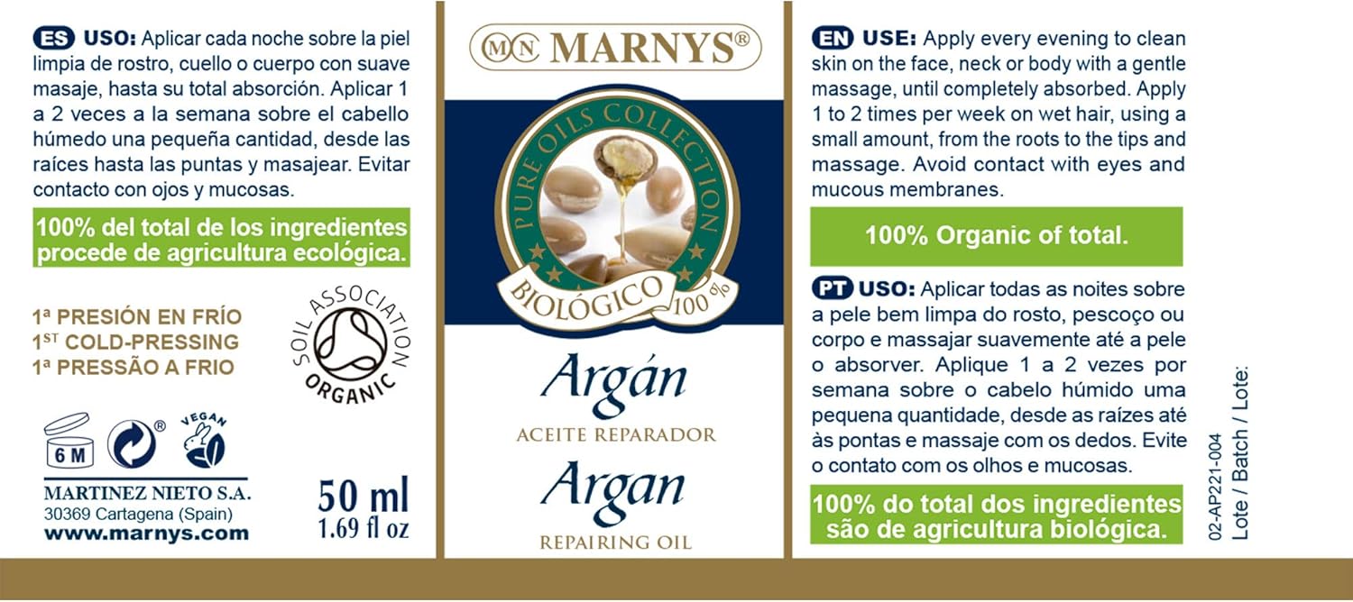 About The Product : Marnys Argan 100% Marnys-Pure Oils Collection Organic Repair Oil 50ml