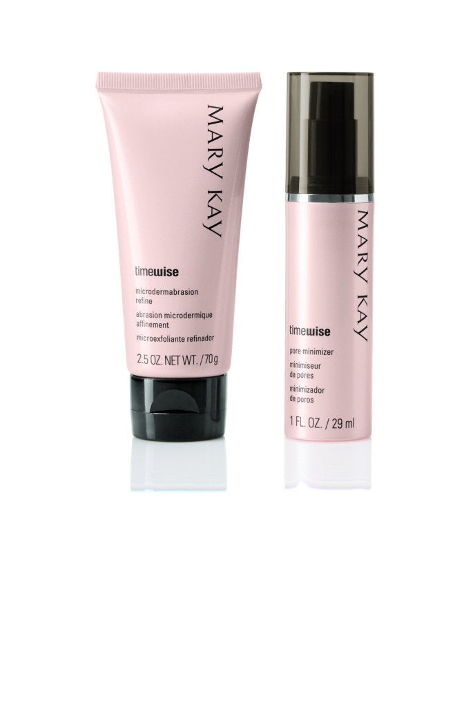 ABOUT THE PRODUCT: 1 > Set Includes: 2 > Time Wise Microdermabrasion Refine 3 > Time Wise The Pore Minimizer nourishing serumMicrodermabrasion Refine is a physical exfoliator that reduces the appearance of fine lines and gently refines skin’s texture as it removes surface dead skin cells and build-up from pores. Pore Minimizer goes beyond skin texture to tighten the look of pores. With pores cleared of build-up and dead skin cells, Pore Minimizer works immediately to reduce their appearance. And the results get better over time. The Pore Minimizer nourishing serum helps calm and comfort skin. It’s the perfect after-step to Microdermabrasion Refine to reduce any appearance of redness and soothe delicate skin. Working together 2-to-3 times a week, both products dramatically improve skin texture for a high-definition-worthy complexion. After cleansing, 2-3 times a week apply a small amount of TimeWise Microdermabrasion Refine to wet face with fingertips. Using circular motions, gently massage over face. Rinse thoroughly with warm water and pat dry. Use fingertips to apply 2-3 pumps of TimeWise Pore Minimizer to face in an upward and outward motion. Follow with your regular moisturizer. The Pore Minimizer can also be used daily, twice a day, to reduce the appearance of pores