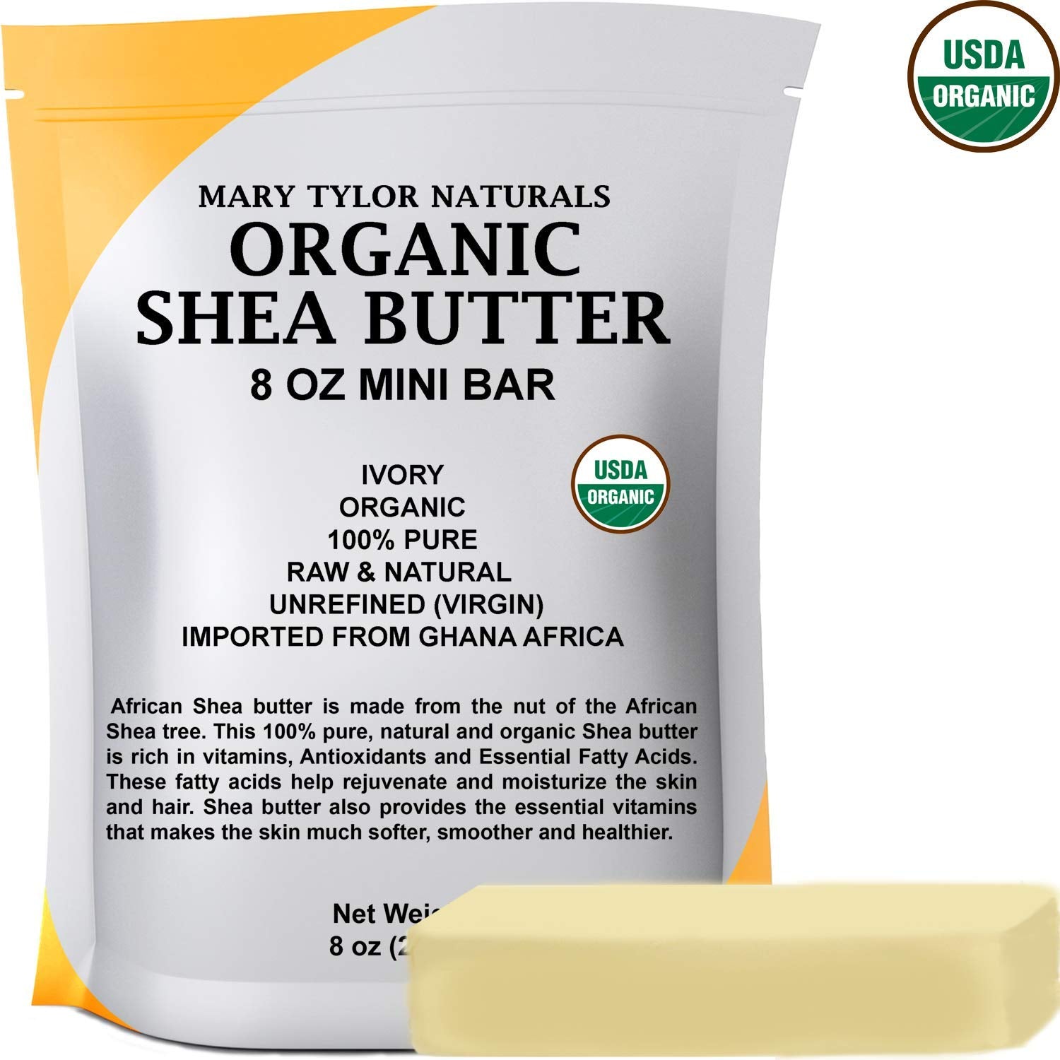 Mary Tylor Naturals Organic Shea butter 8 oz — USDA Certified Raw, Unrefined, Ivory From Ghana Africa — Great for Hair, Skin Nails and DIY projects