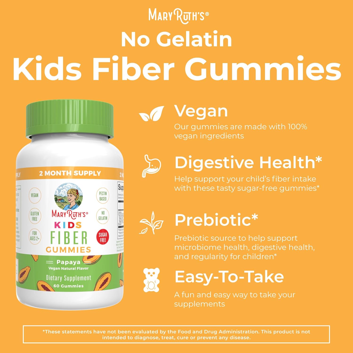 Maryruth Organics Nutritional Supplement, 2 Month Supply, Sugar Free, Prebiotic, For Kids Ages 2+, Gut Health And Digestion Support, 3G Soluble Fiber Per Gummy, 60 Count
