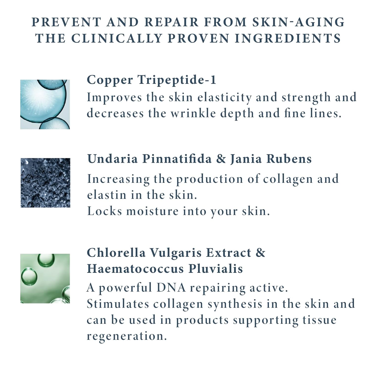 ?ANTIOXIDANT?Five peptides promote skin Collagen regeneration to restore elasticity and firmness. Using real, 24-Karat gold, which contains a small amount of negative ions combined with positive ions on the skin surface to make the skin more stable, accelerate metabolism, help nutrients enter the deep skin, activate cells in the body, maintain the balance of electrical ions between cells, fight skin allergies, and promote collagen proliferation