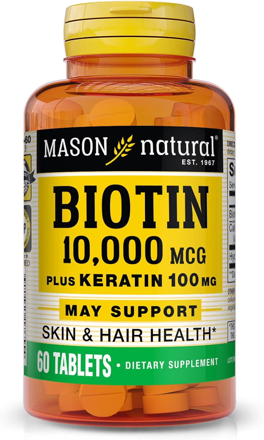 Mason Natural Biotin 10000 Mcg Plus Keratin 100 Mg With Calcium - Healthy Hair, Strong Nails And Glowing Skin, Premium Beauty Supplement, 60 Tablets