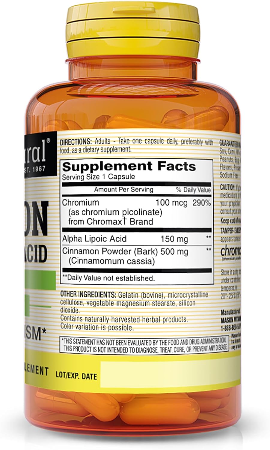 Mason Natural Cinnamon With Alpha Lipoic Acid - Healthy Sugar Metabolism, Supports Heart And Circulatory Health, 60 Capsules