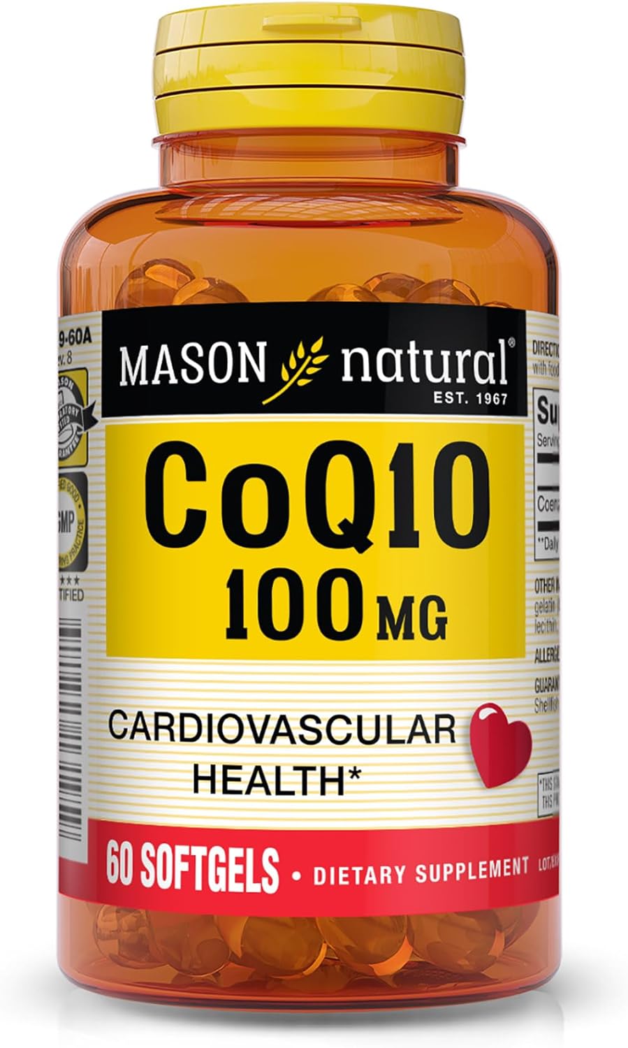 Mason Natural Co Q10 100 Mg - Healthy Heart And Cellular Energy Production, Supports Cardiovascular Health, 60 Softgels