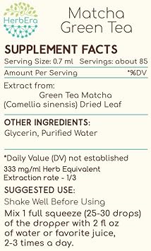 Matcha Green Tea B60 Alcohol-Free Herbal Extract Tincture, Concentrated Liquid Drops Natural Green Tea, Matcha (Camelia Sinesis) Dried Leaf (2 Fl Oz)