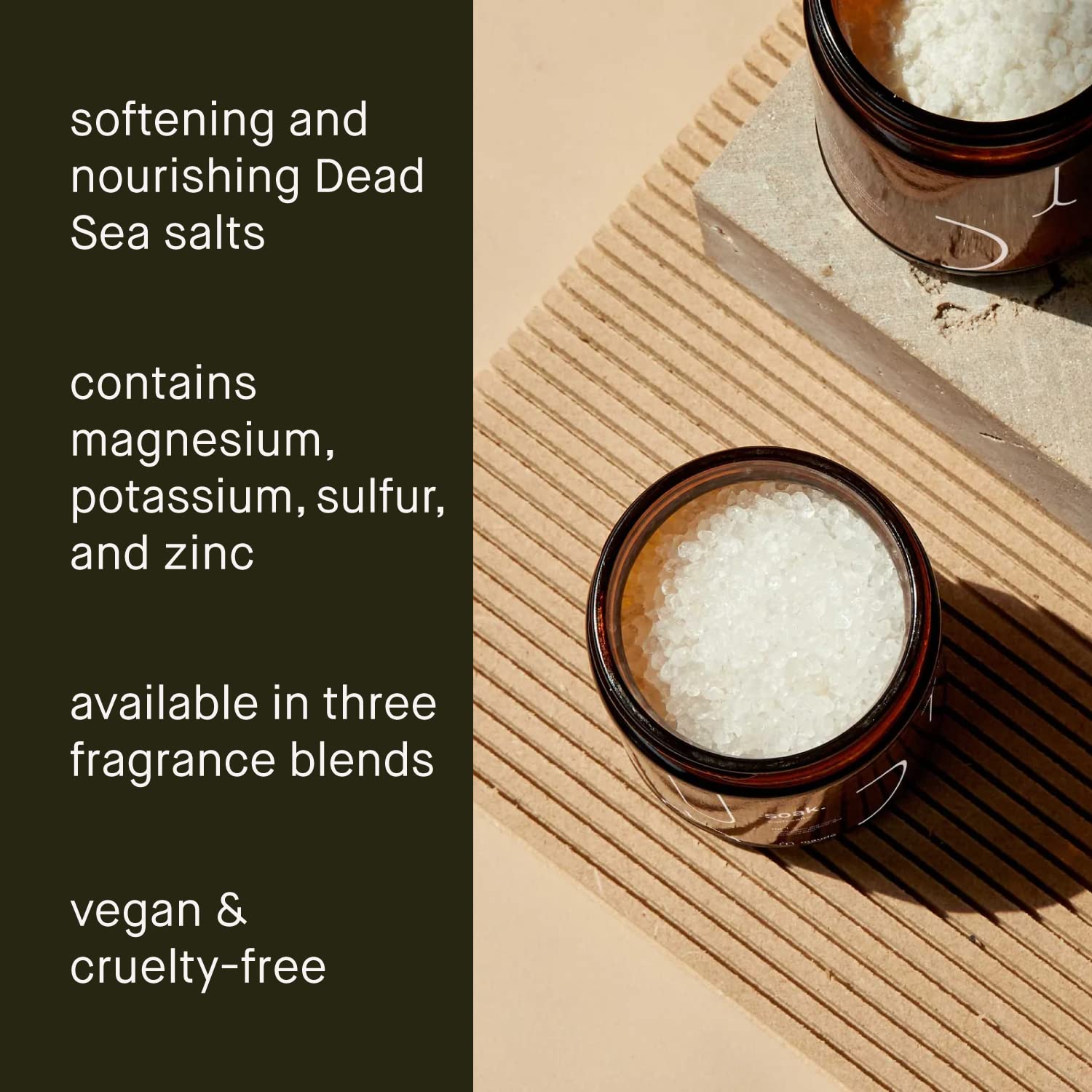 About this item Elevate Your Ritual - This indulgent magnesium bath salt blend is designed to soften skin while delicately scenting your bath water. Add it to your bath water to promote muscle recovery, and help nourish, rejuvenate, and soften skin with essential vitamins and minerals. Nourishing Ingredients - Made with hand-harvested salt crystals from the Southern Dead Sea, and fortified with essential vitamins and minerals like magnesium chloride and potassium chloride. Paraben-free + made in the USA. Bright Aroma - These mineral-rich bath salts deliver fresh notes of pink pepper, gurjun balsam, lemon and cedarwood. Use them to jumpstart your morning, or add them to an evening soak to deepen your bedtime routine. How to Use - To begin your own magnesium bath soak, simply add a handful of bath salt to warm water and swirl until absorbed. Soak for 20 minutes, then rinse and towel dry. Made With You In Mind - Our vegan-friendly Soak salts are designed to enhance the skin's natural hydration process and act as gentle, yet effective exfoliants. Collect them all to tailor every bath to your needs. See more product details,Elevate Your Ritual - This indulgent magnesium bath salt blend is designed to soften skin while delicately scenting your bath water. Add it to your bath water to promote muscle recovery, and help nourish, rejuvenate, and soften skin with essential vitamins and minerals,Nourishing Ingredients - Made with hand-harvested salt crystals from the Southern Dead Sea, and fortified with essential vitamins and minerals like magnesium chloride and potassium chloride. Paraben-free + made in the USA,Bright Aroma - These mineral-rich bath salts deliver fresh notes of pink pepper, gurjun balsam, lemon and cedarwood. Use them to jumpstart your morning, or add them to an evening soak to deepen your bedtime routine,How to Use - To begin your own magnesium bath soak, simply add a handful of bath salt to warm water and swirl until absorbed. Soak for 20 minutes, then rinse and towel dry,Made With You In Mind - Our vegan-friendly Soak salts are designed to enhance the skin's natural hydration process and act as gentle, yet effective exfoliants. Collect them all to tailor every bath to your needs