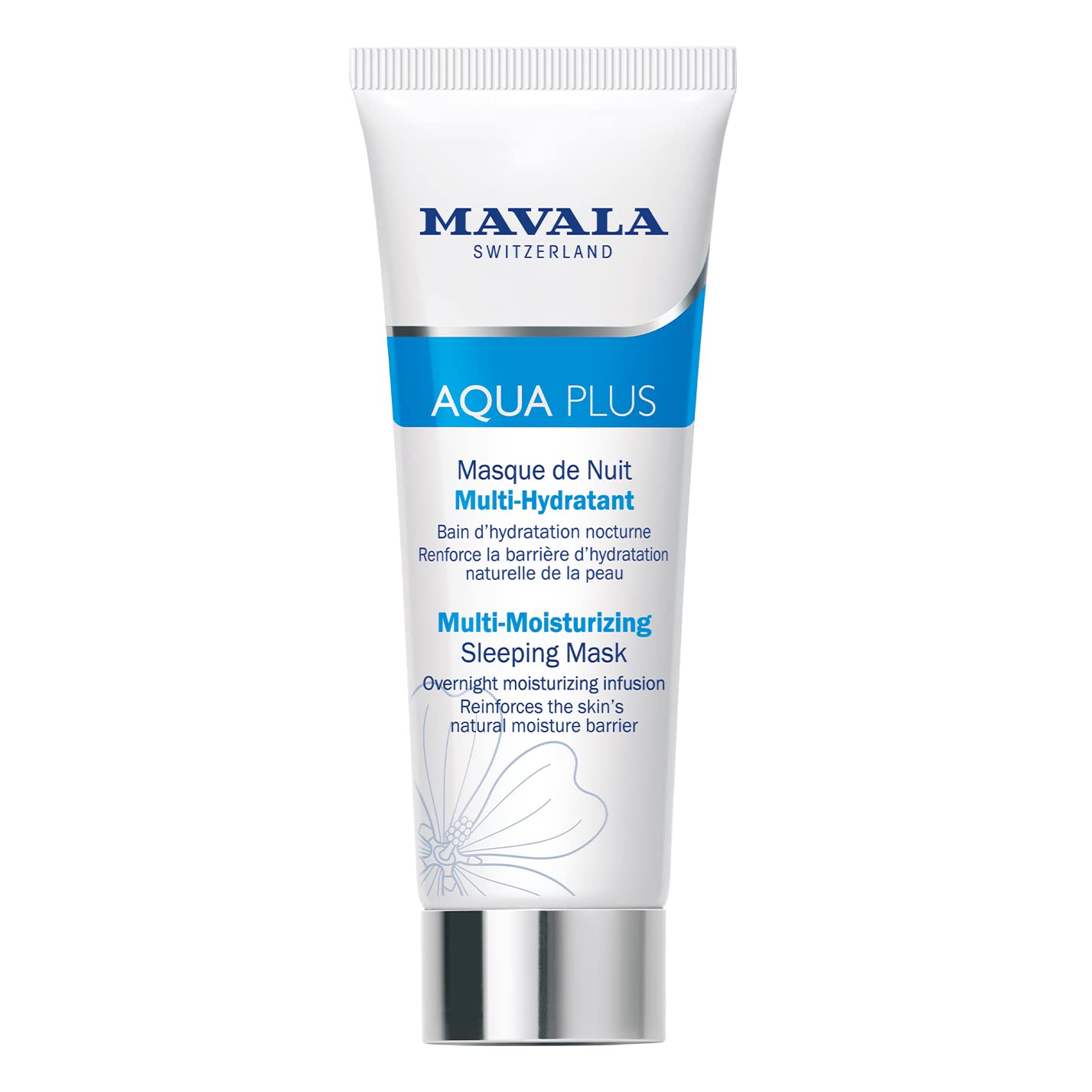 About this item SWISS SECRET: Replenish your skin with Alpine moisture! Our formula includes Swiss mallow flower, pure alpine water and 3 hyaluronic acids that work together to rehydrate your skin DAMAGED SKIN: Dehydrated skin lacks moisture. It feels tight and wrinkles appear prematurely. Less protected by a thinner cutaneous barrier, it is more reactive and more likely to redden RESTORE SKIN: AQUA PLUS Multi-Moisturizing Sleeping Mask helps skin to restore its natural water reserves and reinforce the protecting skin barrier WHAT TO EXPECT: With the use of this sleep mask, your skin awakens fully replenished, rehydrated, and supple making it more resistant and restoring absolute comfort WORKS ALL NIGHT: MAVALA AQUA PLUS is half mask, half cream, subtly fragranced formula, lightly film-forming to keep the benefits of ingredients all night long See more product details,SWISS SECRET: Replenish your skin with Alpine moisture! Our formula includes Swiss mallow flower, pure alpine water and 3 hyaluronic acids that work together to rehydrate your skin,DAMAGED SKIN: Dehydrated skin lacks moisture. It feels tight and wrinkles appear prematurely. Less protected by a thinner cutaneous barrier, it is more reactive and more likely to redden,RESTORE SKIN: AQUA PLUS Multi-Moisturizing Sleeping Mask helps skin to restore its natural water reserves and reinforce the protecting skin barrier,WHAT TO EXPECT: With the use of this sleep mask, your skin awakens fully replenished, rehydrated, and supple making it more resistant and restoring absolute comfort,WORKS ALL NIGHT: MAVALA AQUA PLUS is half mask, half cream, subtly fragranced formula, lightly film-forming to keep the benefits of ingredients all night long