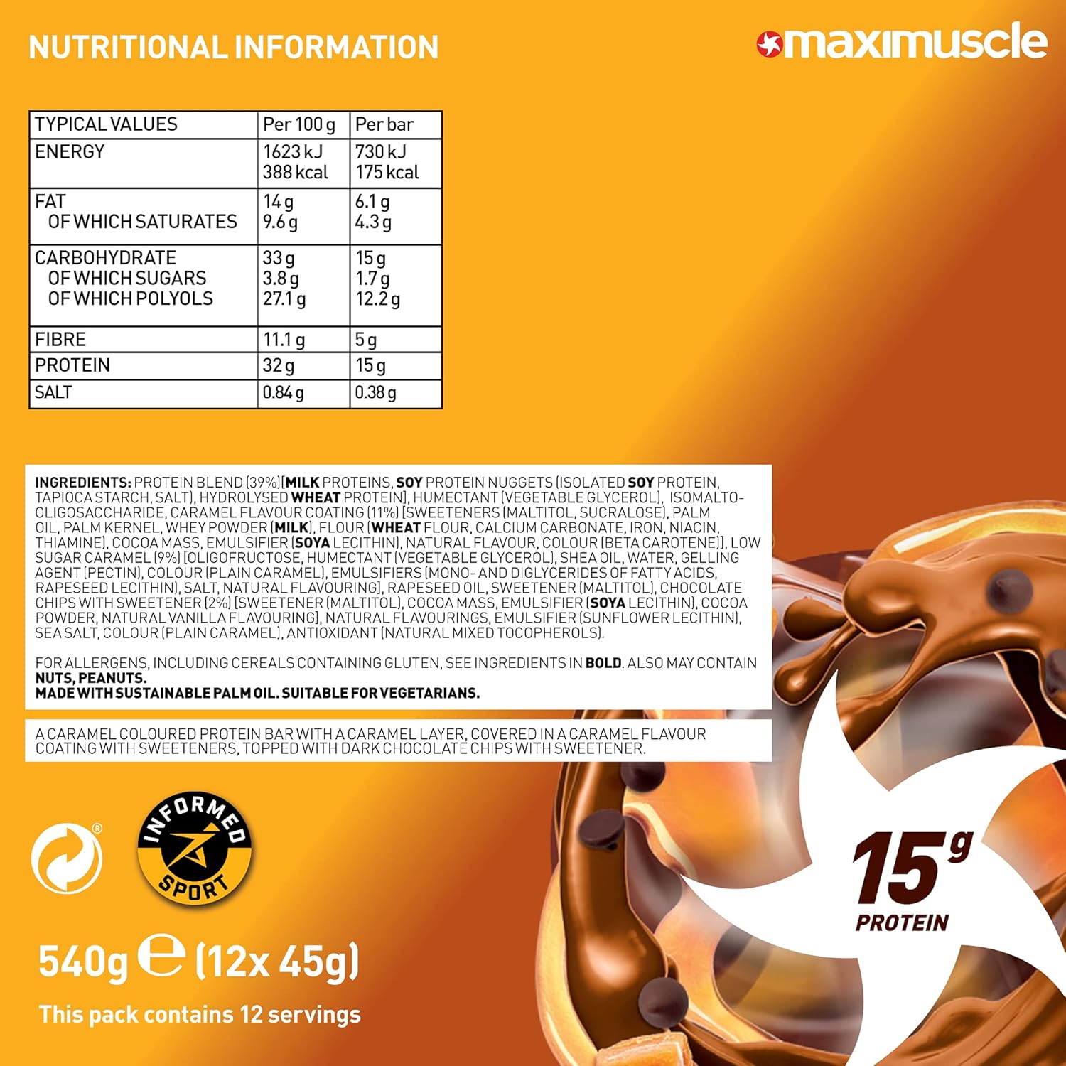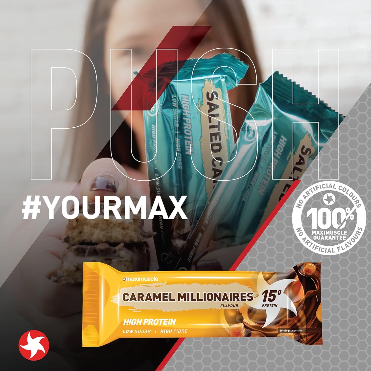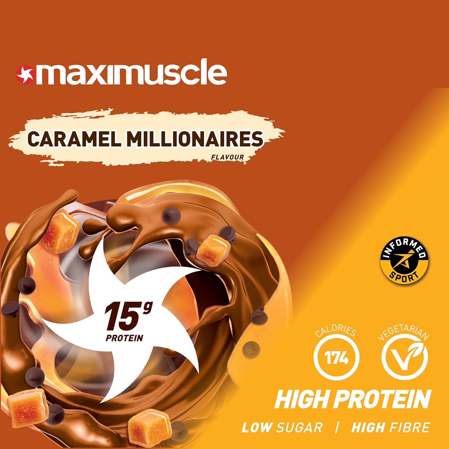Maximuscle Protein Bars | High Fibre, Low Sugar Healthy Snacks With 15G Of Protein & Under 175 Calories Per Serving | Caramel Millionaire 12 X 45G