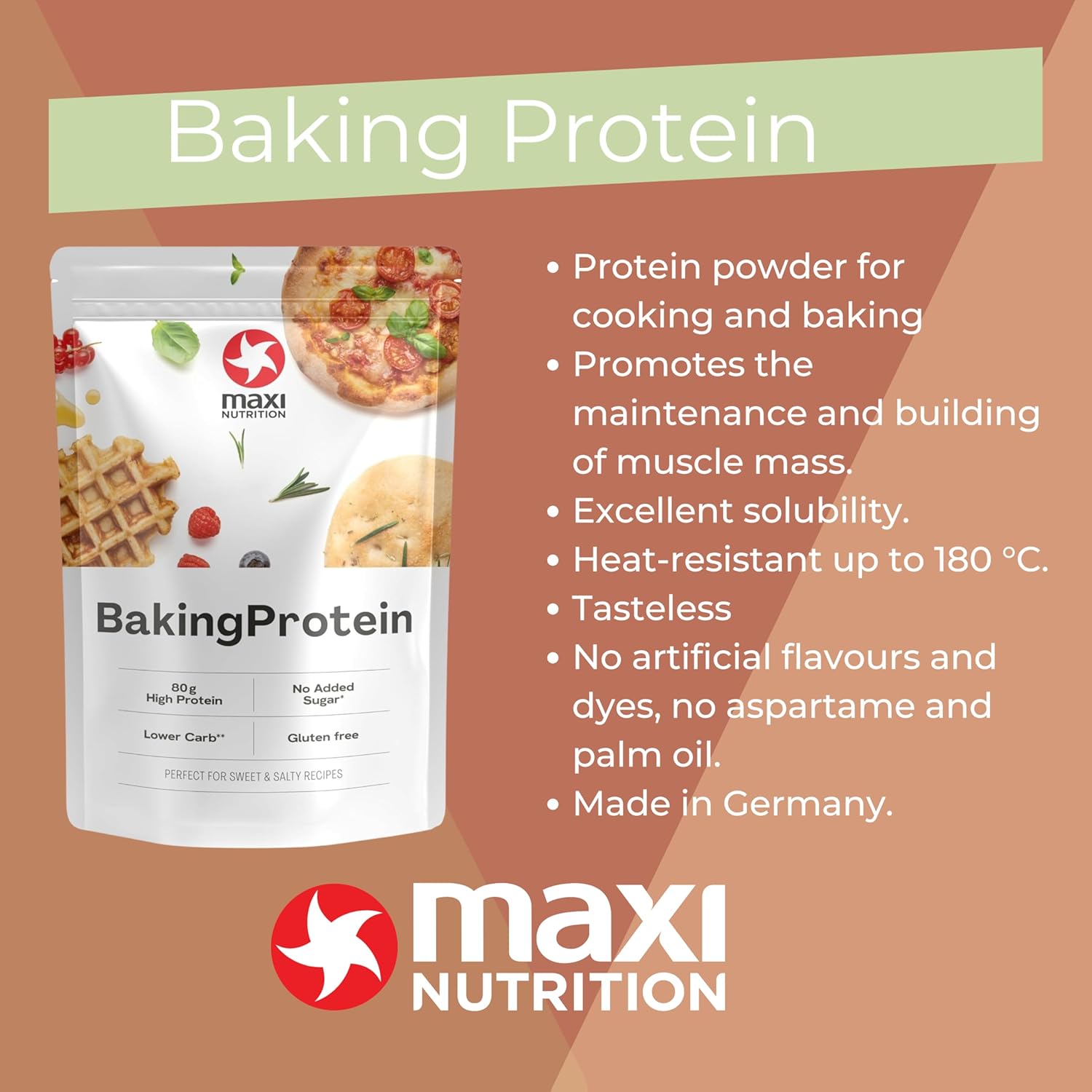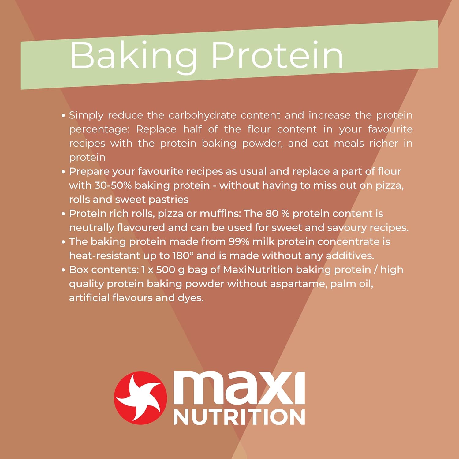 Maxinutrition Baking Protein - Baking Protein Powder For Cooking And Baking - No Additives - 1 X 500G Bag, Per 100G Serving 80G Protein, 358 Calories