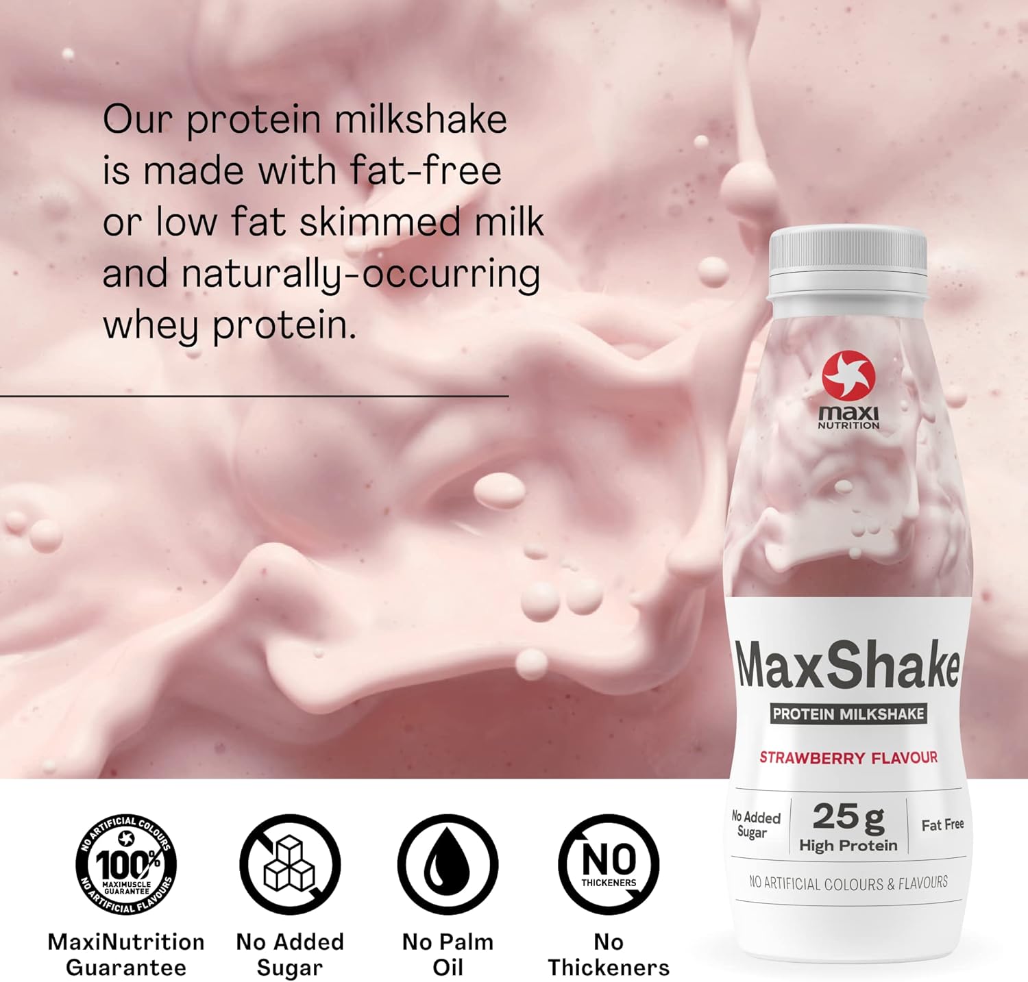 Maxinutrition Maxshake Protein Milkshake Banana Flavour, 12 X 330Ml, 25G Protein, Low Fat & Low Carb, Lactose-Free, No Artificial Flavors