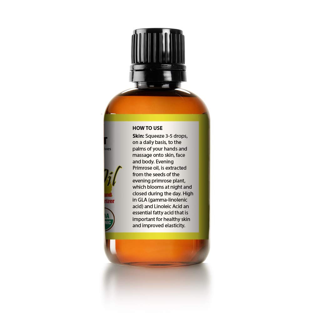About this item BEST QUALITY: USDA Certified Organic Evening Primrose Oil is High in GLA gamma-linolenic acid - 10% an essential fatty acid. A fast absorbing non-greasy natural liquid oil that makes your skin feel wonderful and new again. Mayanâs Secret UDSA Certified Organic EVENING PRIMROSE Oil Amazing for dry/flaky/ chapped/ cracked, sensitive and mature skin types. Effectively moisturize, reduces wrinkles, dryness, encourages regeneration of skin cells and keeps skin soft. ORGANIC EVENING PRIMROSE Oil helps damaged skin like ACNE, PSORIASIS, ECZEMA, ROSACEA, STRETCH MARKS, SCARS, and ACNE. HAIR CARE: GLA is not only beneficial for the skin, but for the hair as well. Mayanâs Secret Organic Evening primrose oil helps reduce hair loss by nourishing the scalp and strengthening the hair. It also reduces dandruff, redness and itchiness. Massage the oil into the scalp and leave it in for 30 minutes before washing it off. Do this hair treatment once every week for stronger, healthier hair. Mayanâs Secret Organic Evening Primrose oil is Rich in VITAMIN E, NATURAL FATTY ACIDS and OMEGA 6 - Natural combating premature ageing skin. Quickly absorbs and deeply penetrates to nourish and hydrate. See more product details,BEST QUALITY: USDA Certified Organic Evening Primrose Oil is High in GLA gamma-linolenic acid - 10% an essential fatty acid. A fast absorbing non-greasy natural liquid oil that makes your skin feel wonderful and new again, Mayanâs Secret UDSA Certified Organic EVENING PRIMROSE Oil Amazing for dry/flaky/ chapped/ cracked, sensitive and mature skin types. Effectively moisturize, reduces wrinkles, dryness, encourages regeneration of skin cells and keeps skin soft. ORGANIC EVENING PRIMROSE Oil helps damaged skin like ACNE, PSORIASIS, ECZEMA, ROSACEA, STRETCH MARKS, SCARS, and ACNE,HAIR CARE: GLA is not only beneficial for the skin, but for the hair as well. Mayanâs Secret Organic Evening primrose oil helps reduce hair loss by nourishing the scalp and strengthening the hair. It also reduces dandruff, redness and itchiness. Massage the oil into the scalp and leave it in for 30 minutes before washing it off. Do this hair treatment once every week for stronger, healthier hair, Mayanâs Secret Organic Evening Primrose oil is Rich in VITAMIN E, NATURAL FATTY ACIDS and OMEGA 6 - Natural combating premature ageing skin. Quickly absorbs and deeply penetrates to nourish and hydrate