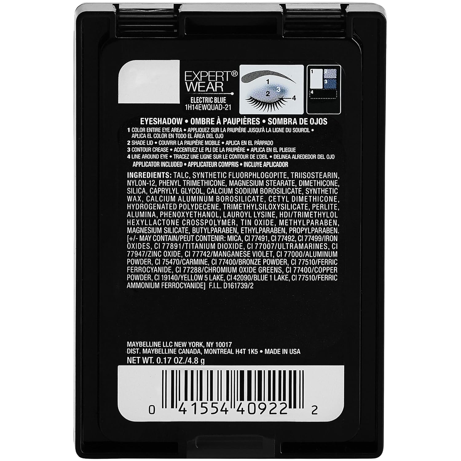 Maybelline New York Expert Wear Eyeshadow Quads, Electric Blue, 0.17