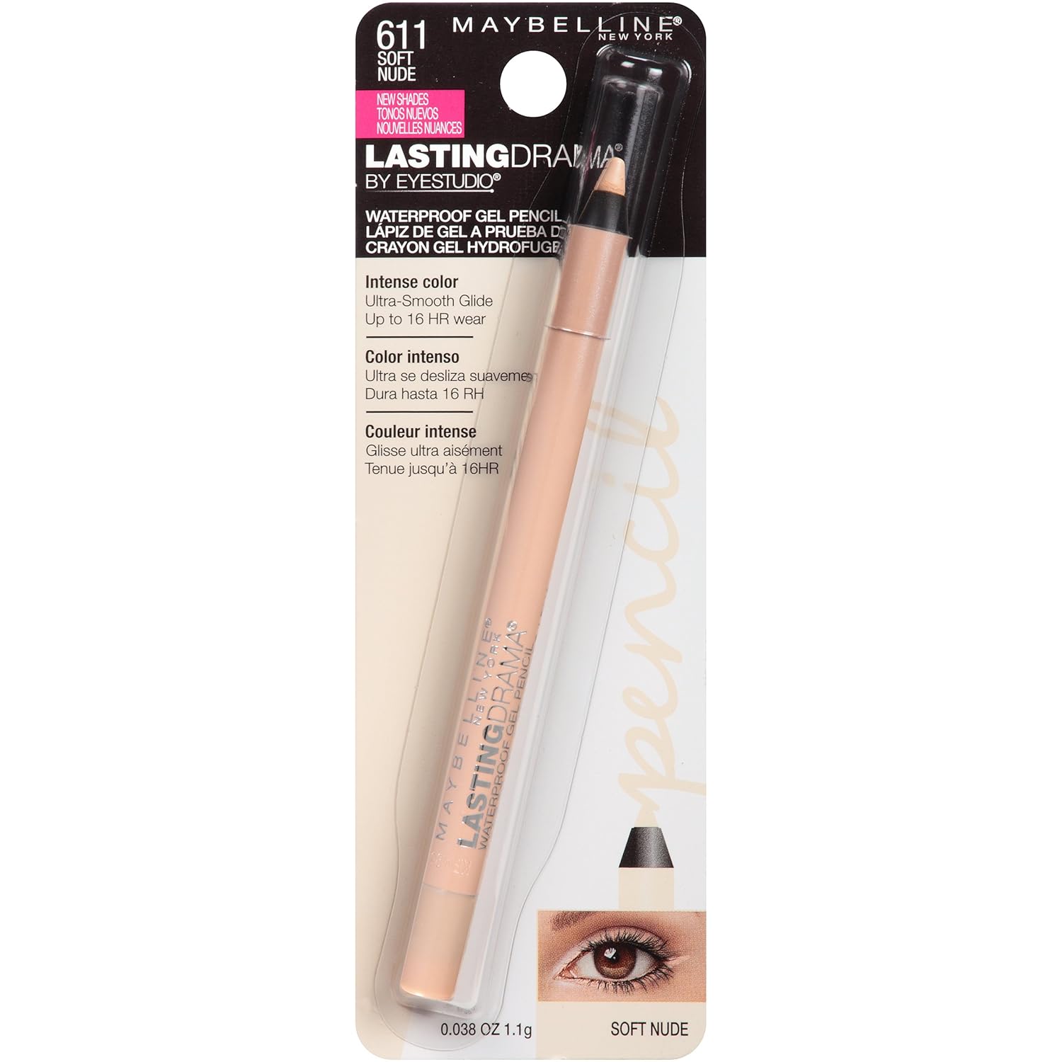Maybelline New York Eyestudio Lasting Drama Waterproof Gel Pencil, Soft Nude, 0.037