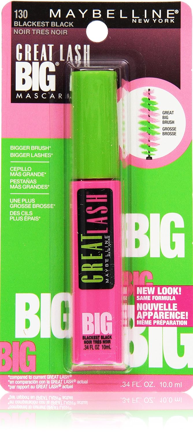 Maybelline New York Great Lash Big Washable Mascara, Blackest Black 130, 0.34 uid