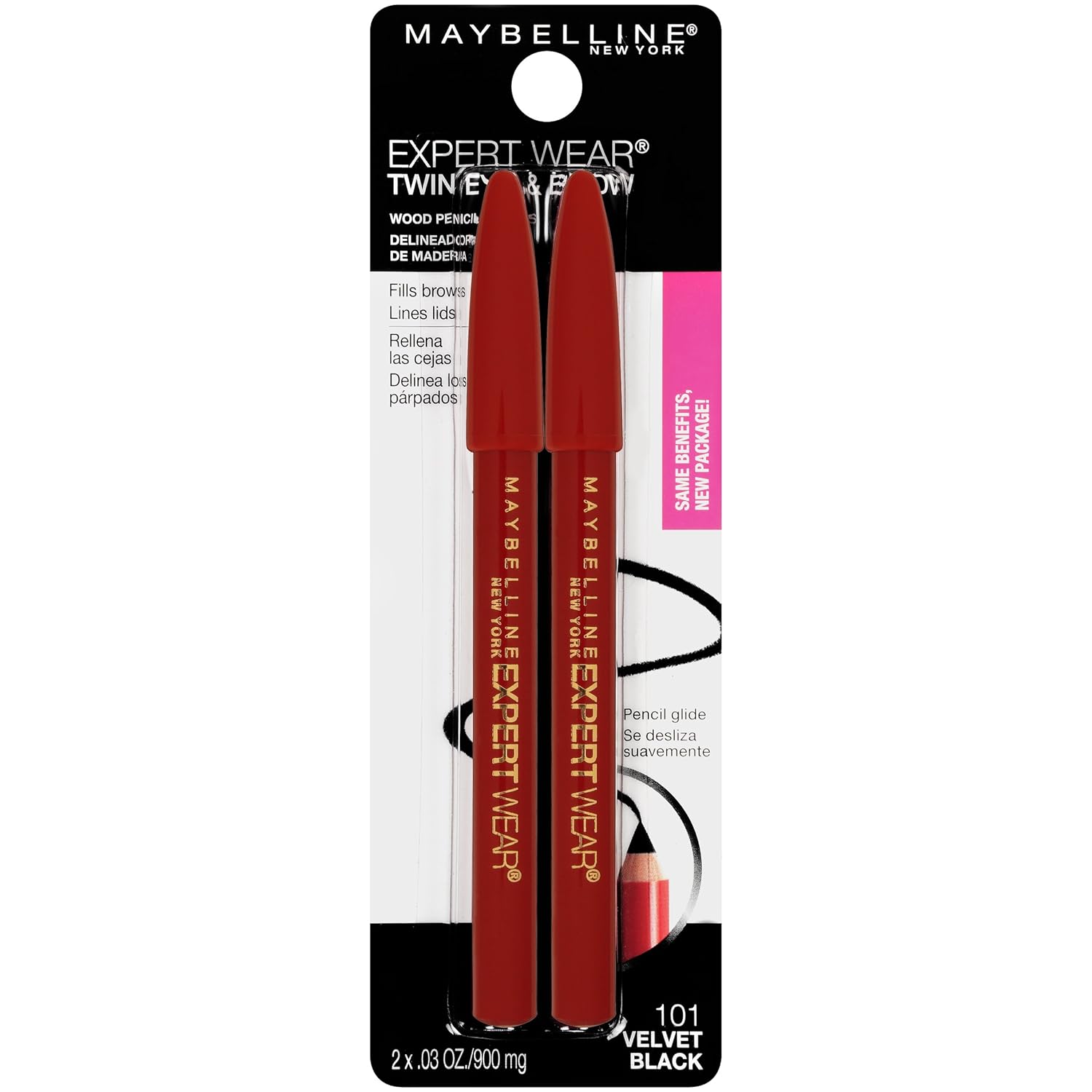 Maybelline New York Makeup Expert Wear Twin Eyebrow Pencils and Eyeliner Pencils, Velvet Black Shade, 2 Count (Pack of 1)
