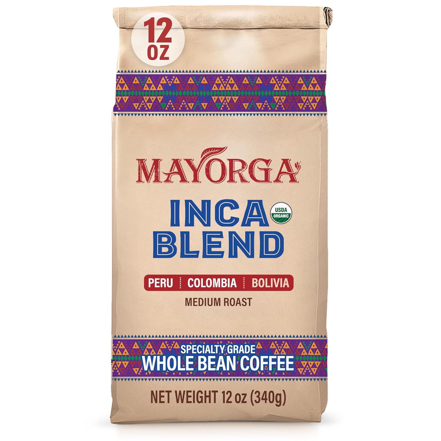 Mayorga Organic Coffee 12Oz Inca Blend - Medium Roast Whole Bean Coffee Specialty Grade, 100% Arabica, Slow Roasted, Chocolate And Honey Flavor With Low Acidity - Usda Organic, Non-Gmo, Kosher