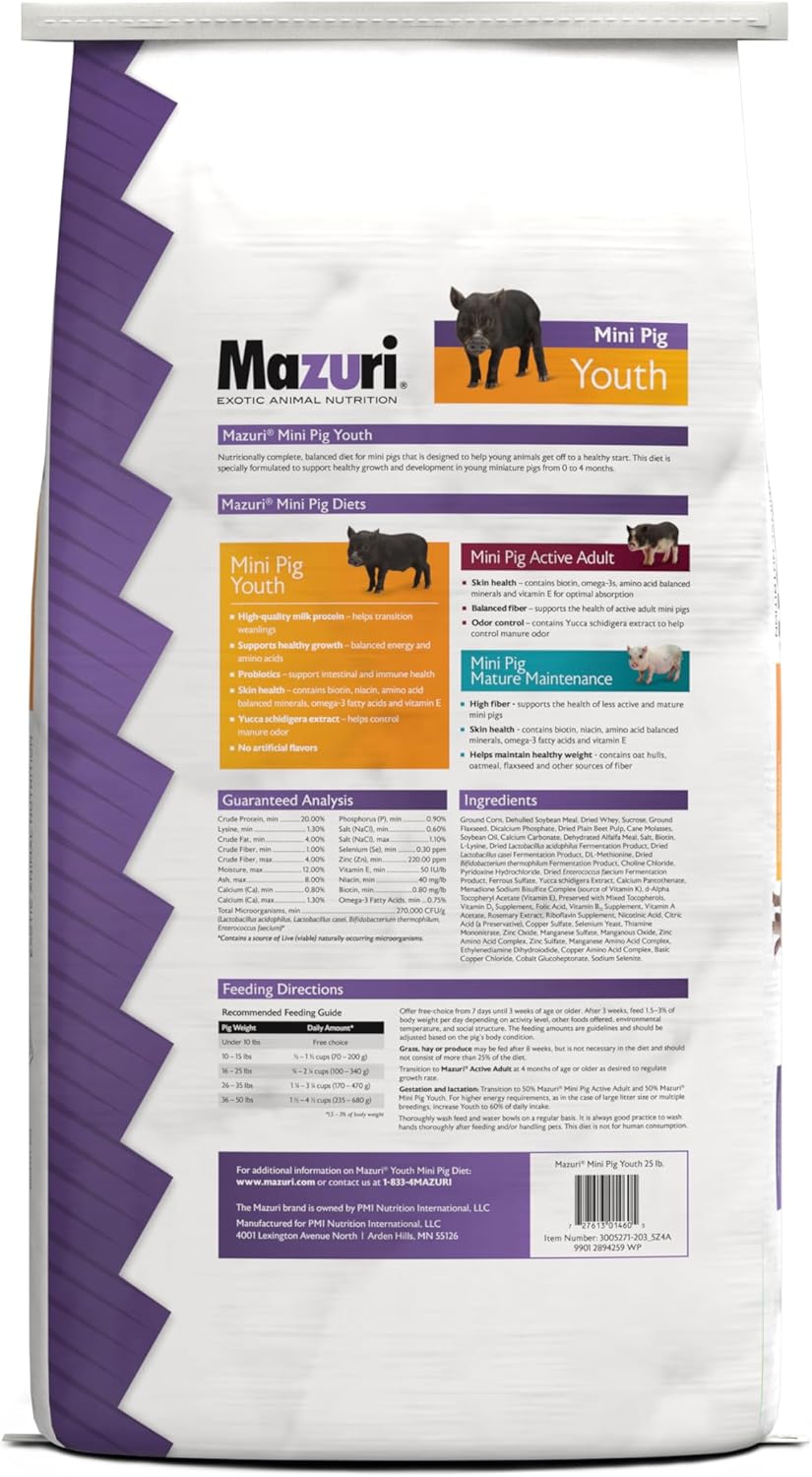 Mazuri Mini Pig Youth Diet Is A Nutritionally Balanced Mini Pig Food Formulated To Help Young Animals Off To A Healthy Start. This Mini Pig Diet, Which Contains High-Quality Milk Proteins Help Transition Weanling Mini Pigs. No Supplementation Is Needed With Mazuri Mini Pig Food