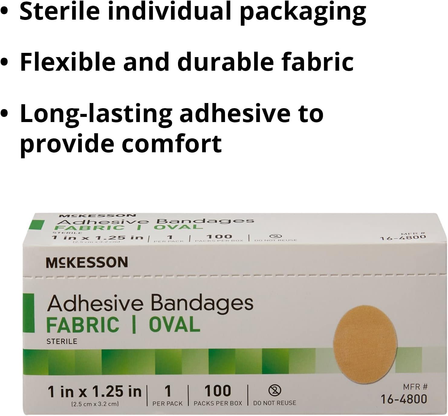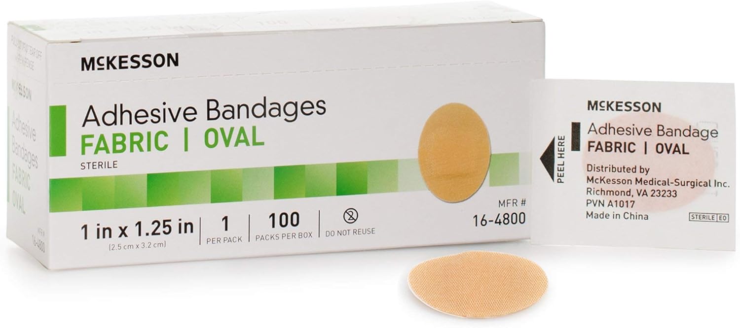 McKesson Adhesive Bandages, Sterile, Fabric Oval, 1 in x 1 1/4 in, 100 Count, 24 Packs, 2400 Total
