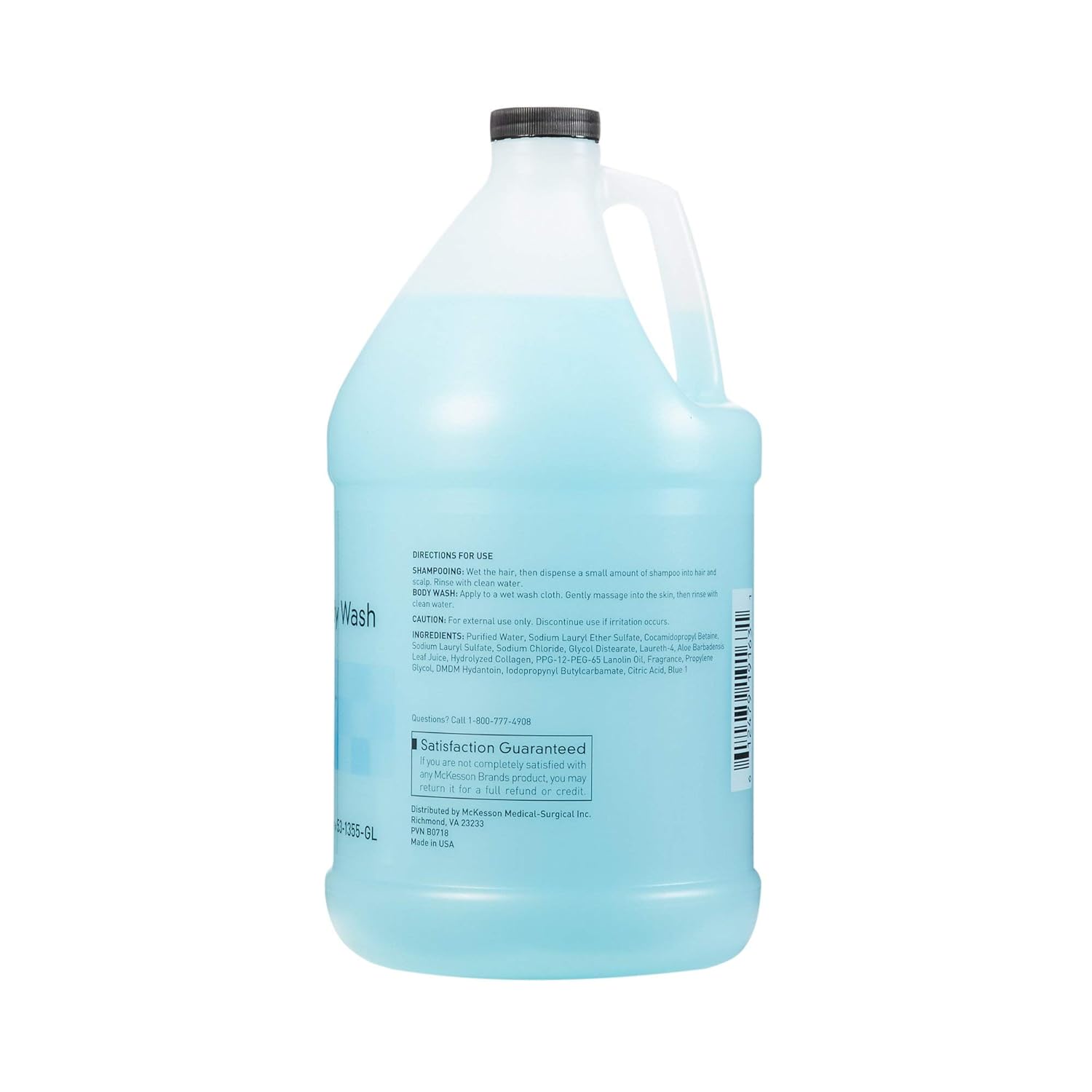 About this item Body wash and shampoo is for everyday use; specially formulated for cleaning fragile skin and hair Ingredients help reduce eye irritation; suitable for bed bathing and hair washing of frail or elderly patients Body wash comes enriched with aloe vera, collagen, protein and lanolin for gentle cleansing of skin, leaving it feeling smooth and hair soft and manageable The McKesson 2-in-1 shampoo and body wash contains soothing, renewing ingredients, and gentle formula prevent eye irritation Pump not Included - Pump (MFR # M59988-10) sold separately See more product details,Body wash and shampoo is for everyday use; specially formulated for cleaning fragile skin and hair,Ingredients help reduce eye irritation; suitable for bed bathing and hair washing of frail or elderly patients,Body wash comes enriched with aloe vera, collagen, protein and lanolin for gentle cleansing of skin, leaving it feeling smooth and hair soft and manageable,The McKesson 2-in-1 shampoo and body wash contains soothing, renewing ingredients, and gentle formula prevent eye irritation,Pump not Included - Pump (MFR # M59988-10) sold separately