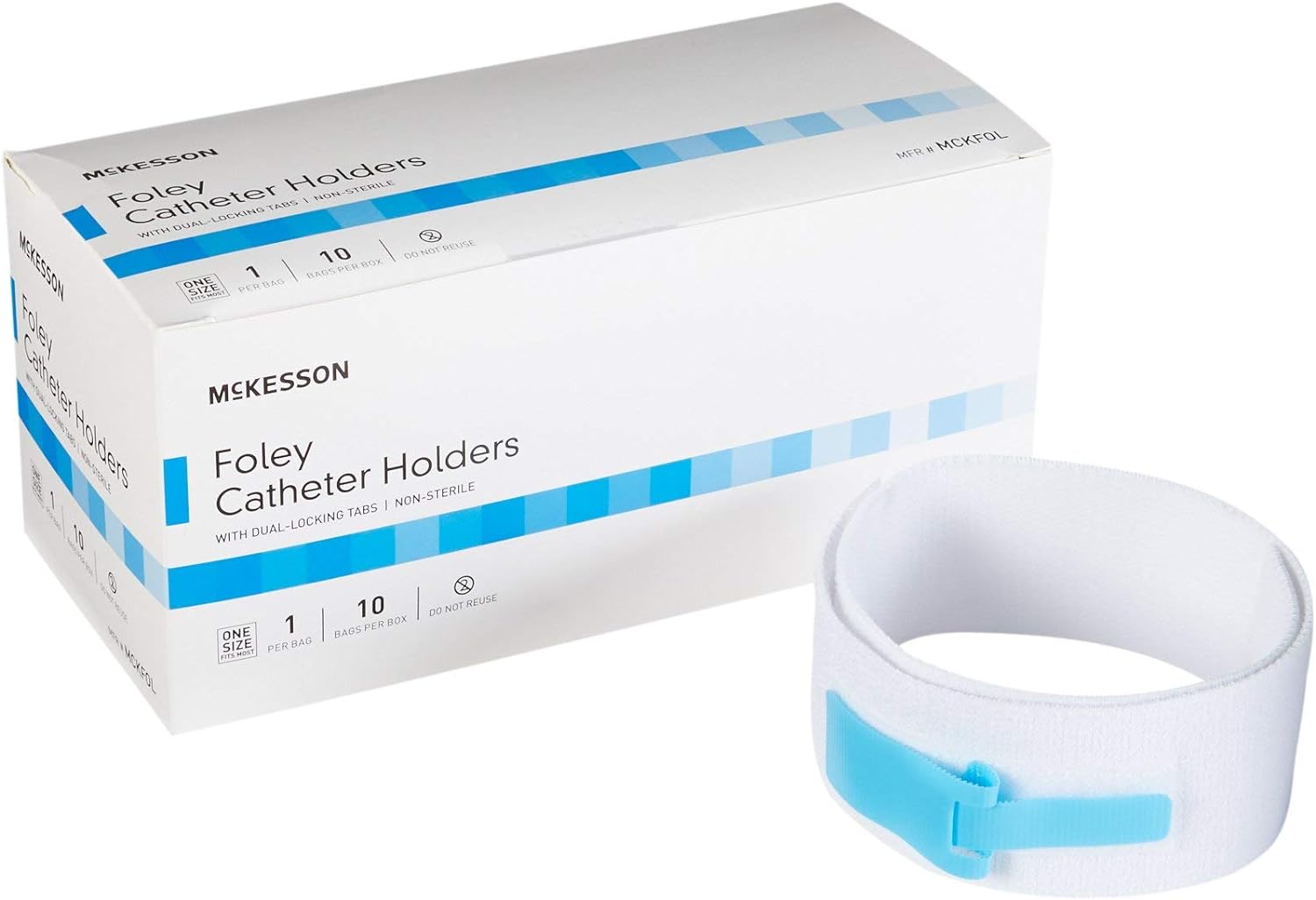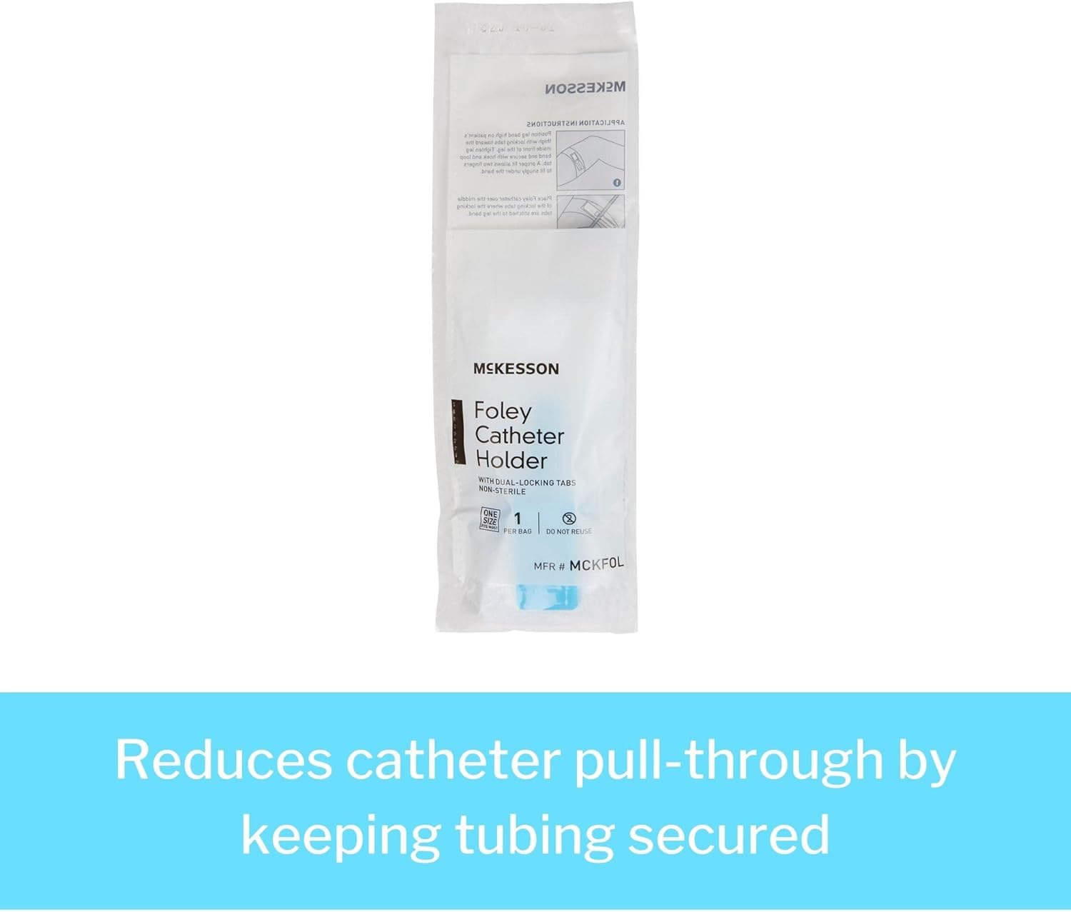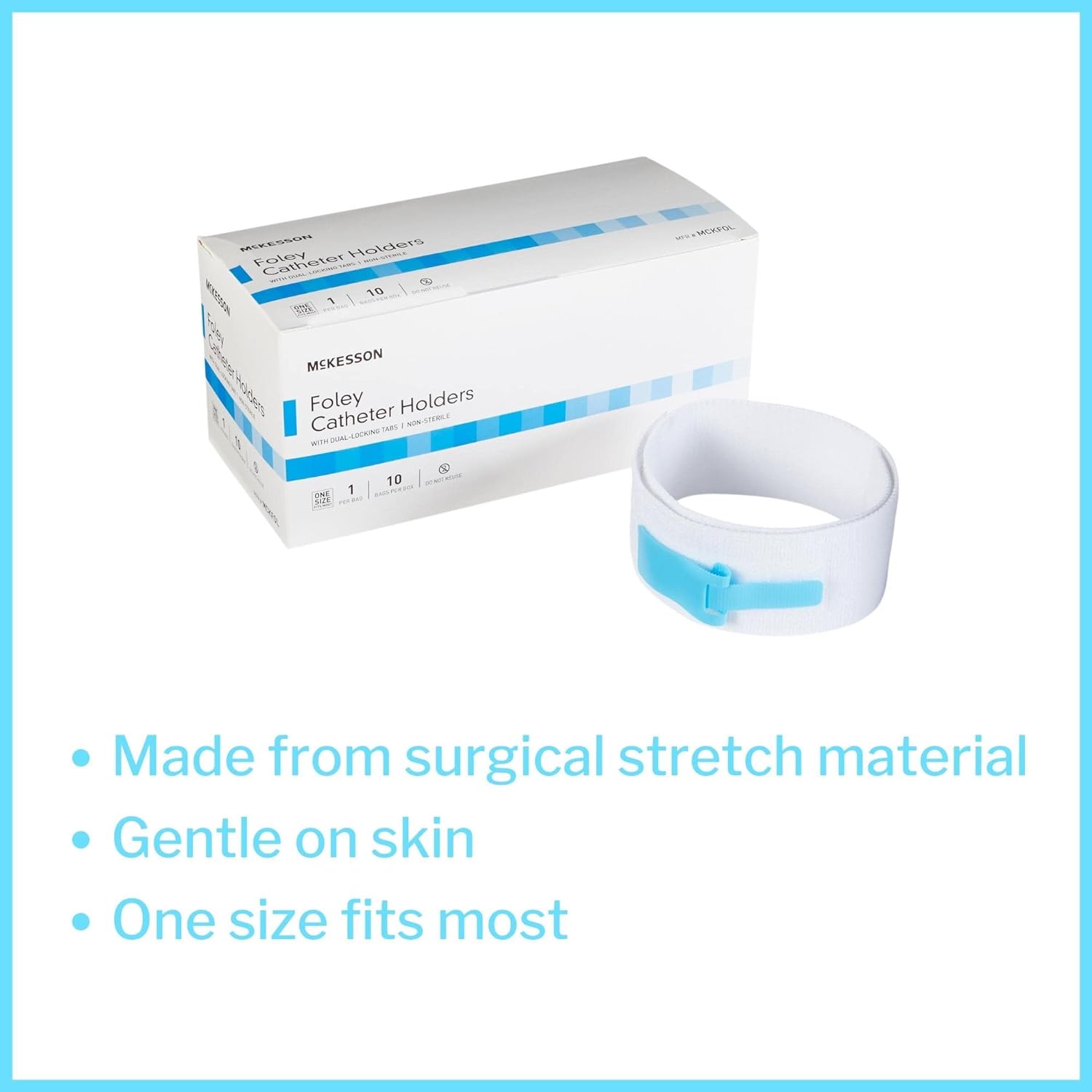 Foley catheter holder is designed to help eliminate irritation and potential infections from skin tears from tapeUsing the catheter holder will reduce the chance of catheter pull-through by keeping the tube secureHook-and-loop closure is made from stretchable material and is gentle on skinNon-sterile tube holder features dual-locking tabs to ensure a tight holdFoley catheter holder will fit universal indwelling cathetersMcKesson foley catheter holders are made from a surgical stretch material that is gentle on the skin, limiting the risk of irritation and potential infections due to tears from tape. By keeping the tubing secured, the catheter holder reduces the chance of catheter pull-through. The dual-locking tabs and hook and loop closure ensure a strong and sturdy hold. Meant to be used on a leg strap, the catheter holder will hold most universal indwelling catheters