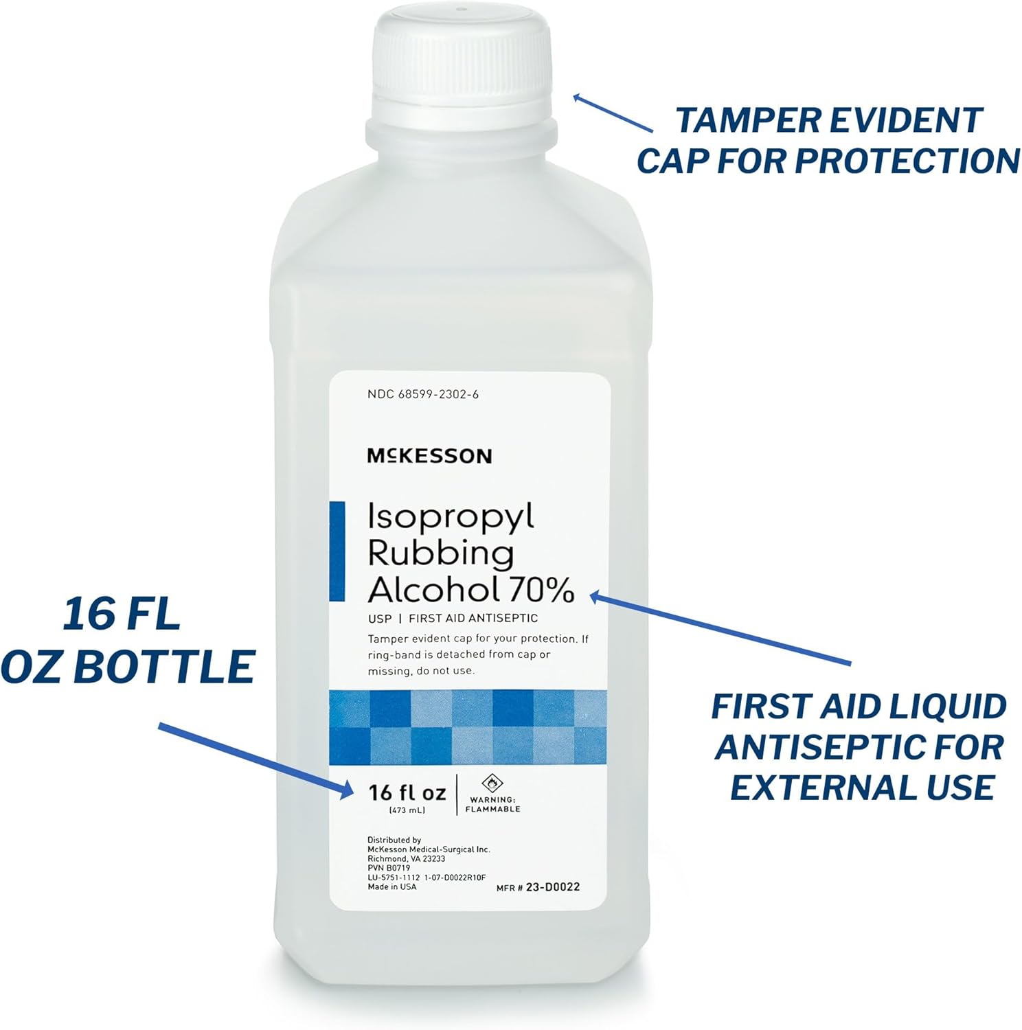 Mckesson Isopropyl Rubbing Alcohol 70% [1 Count] Usp First Aid Antiseptic, 16 Oz