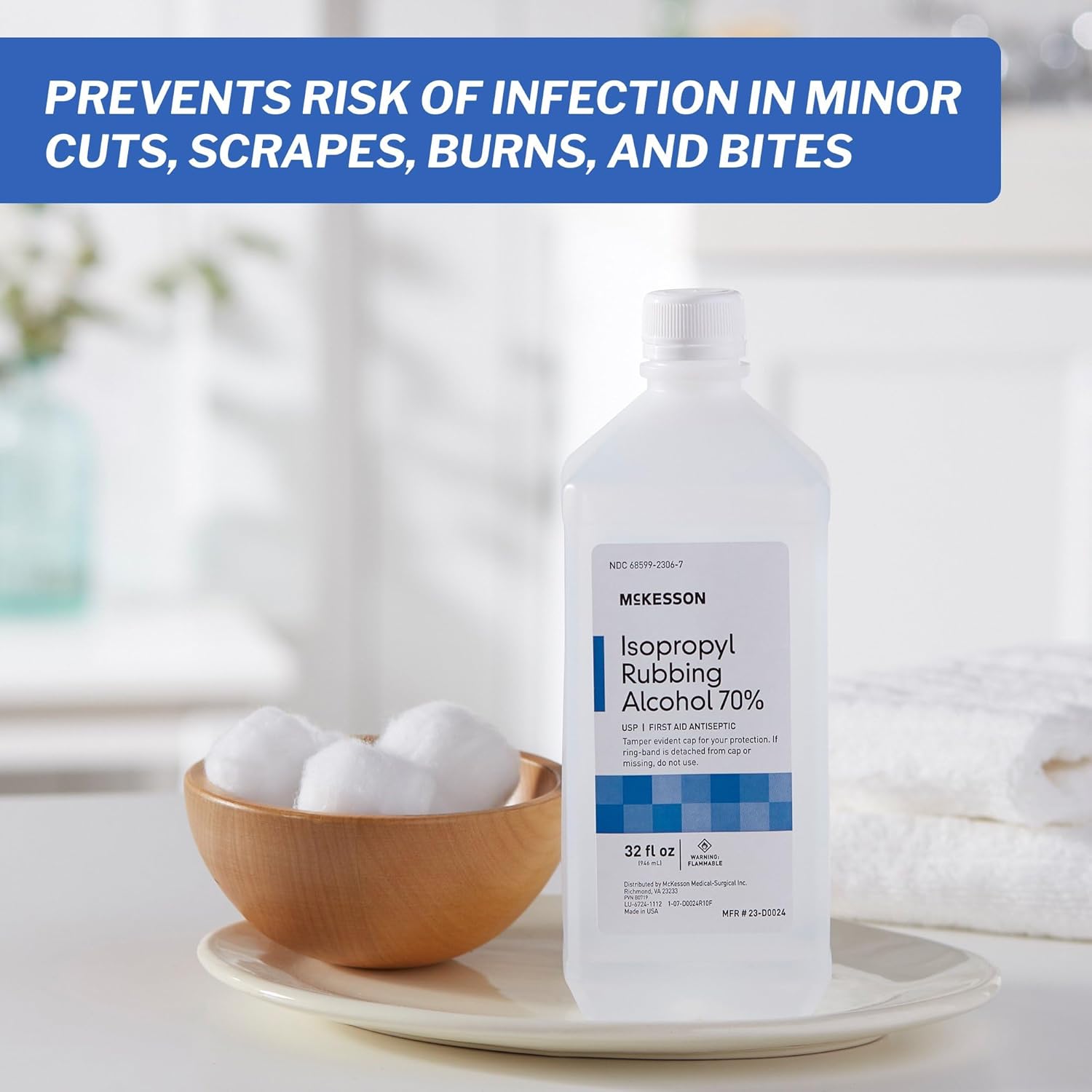 Mckesson Isopropyl Rubbing Alcohol 70% [1 Count] Usp First Aid Antiseptic, 32 Oz