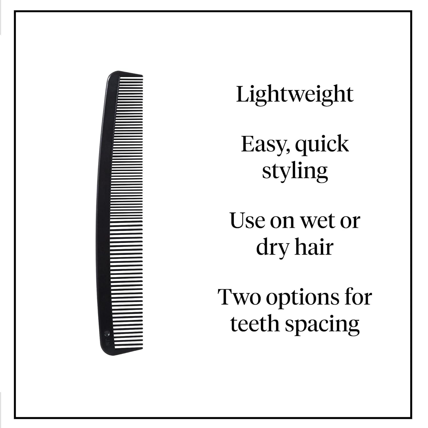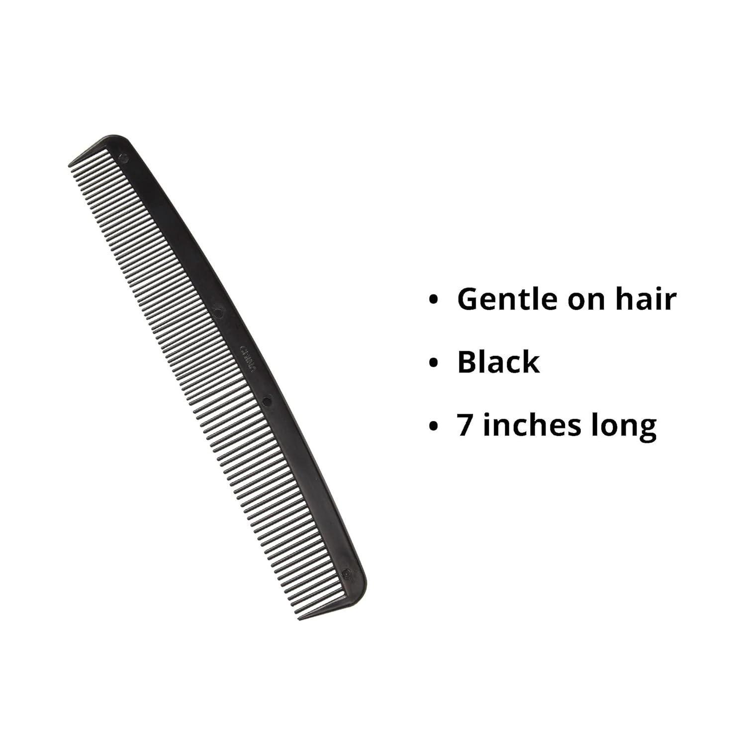 About this item Easy, quick styling: Suitable for wet or dry hair, this pack of black plastic combs is perfect for nursing homes, hairdressers, salons, schools, and more; each comb measures 7 inches Proper hair care: Plastic bristles allow for gentle brushing and healthy hair maintenance Small, lightweight design: Easy to carry and store, this pack of plastic combs won't break the bank or take up too much space Two options for teeth spacing: One side of the comb has tighter spaced teeth, while the other is wider to allow for easy detangling; the comb gently massages the scalp to stimulate hair follicles Bulk buy for cost savings: Stock up on these combs to be properly prepared and save money See more product details,Easy, quick styling: Suitable for wet or dry hair, this pack of black plastic combs is perfect for nursing homes, hairdressers, salons, schools, and more; each comb measures 7 inches,Proper hair care: Plastic bristles allow for gentle brushing and healthy hair maintenance,Small, lightweight design: Easy to carry and store, this pack of plastic combs won't break the bank or take up too much space,Two options for teeth spacing: One side of the comb has tighter spaced teeth, while the other is wider to allow for easy detangling; the comb gently massages the scalp to stimulate hair follicles,Bulk buy for cost savings: Stock up on these combs to be properly prepared and save money