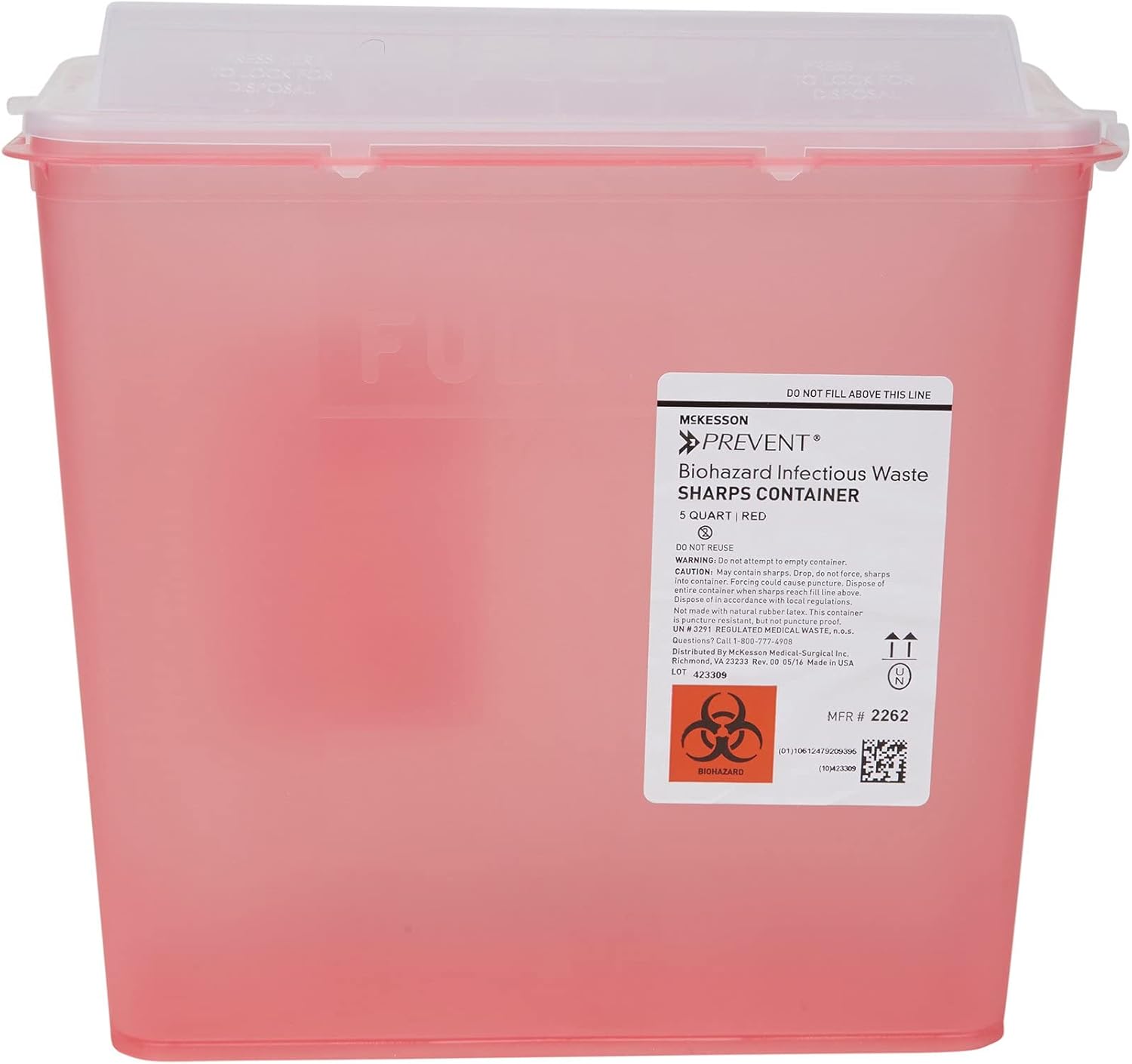 Mckesson Prevent Sharps Container For Home Use, 5 Quart - For Biohazard Infectious Waste, Needle And Syringe Disposal - Translucent, Touchless Lid - Red, 1 Count