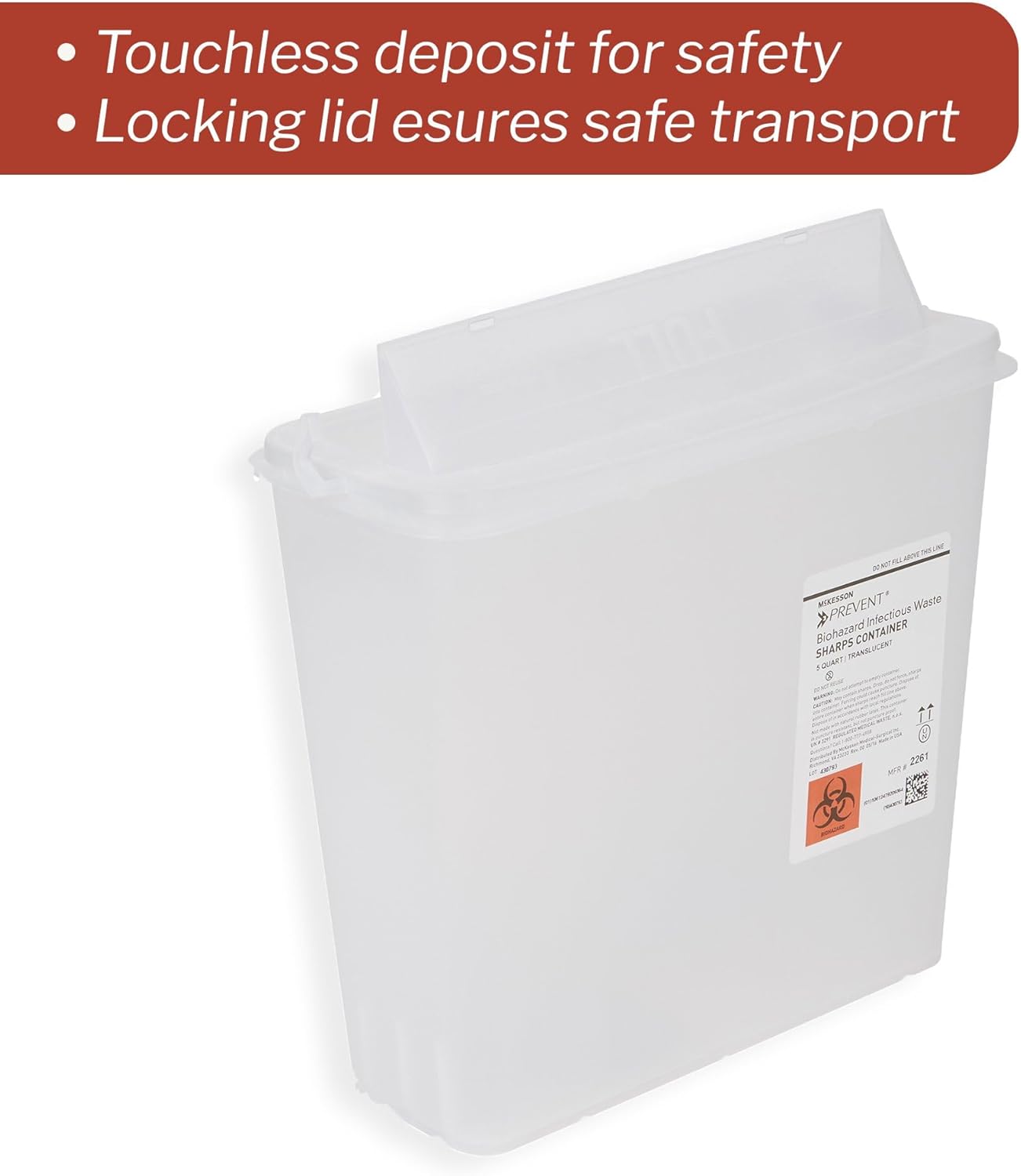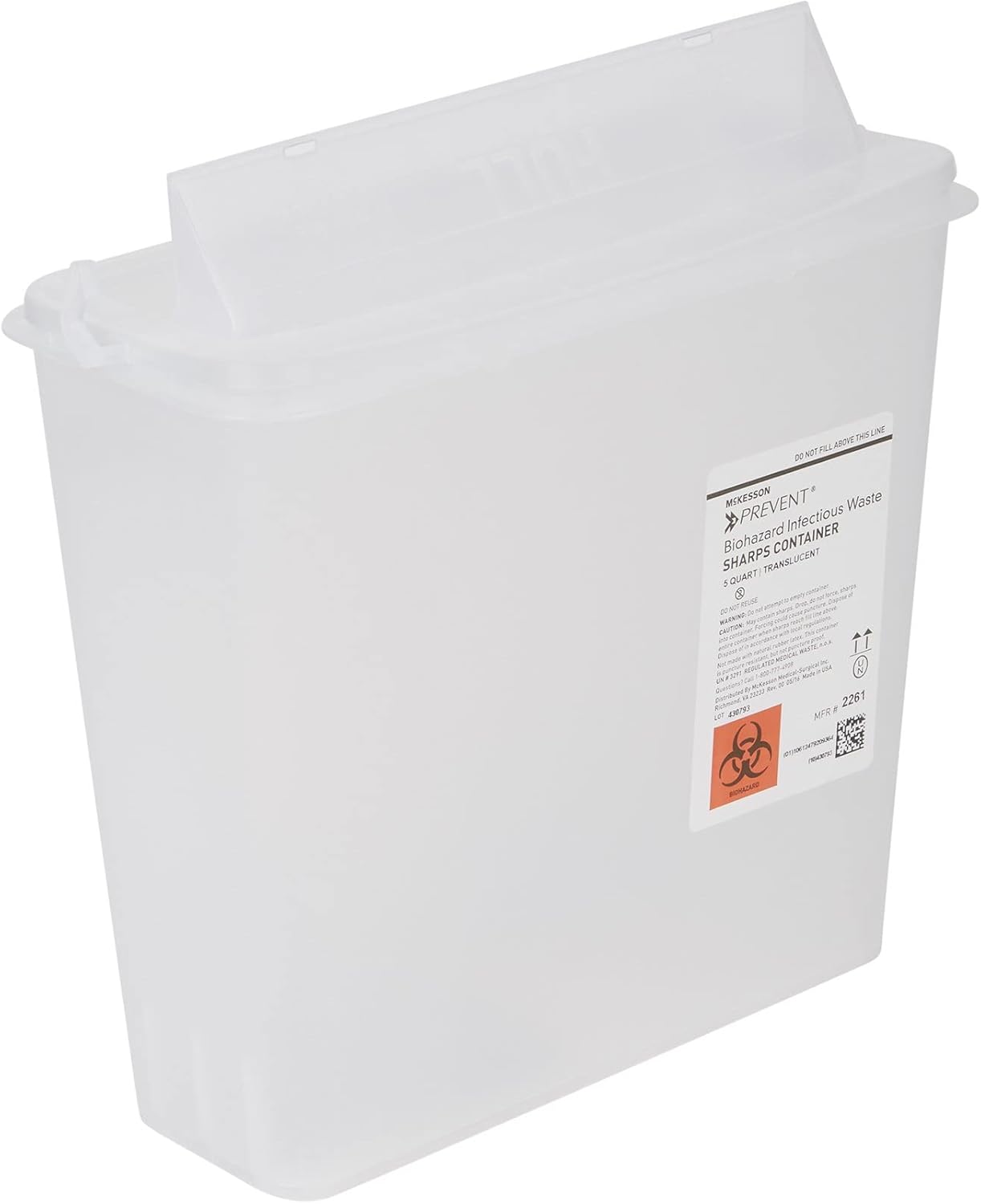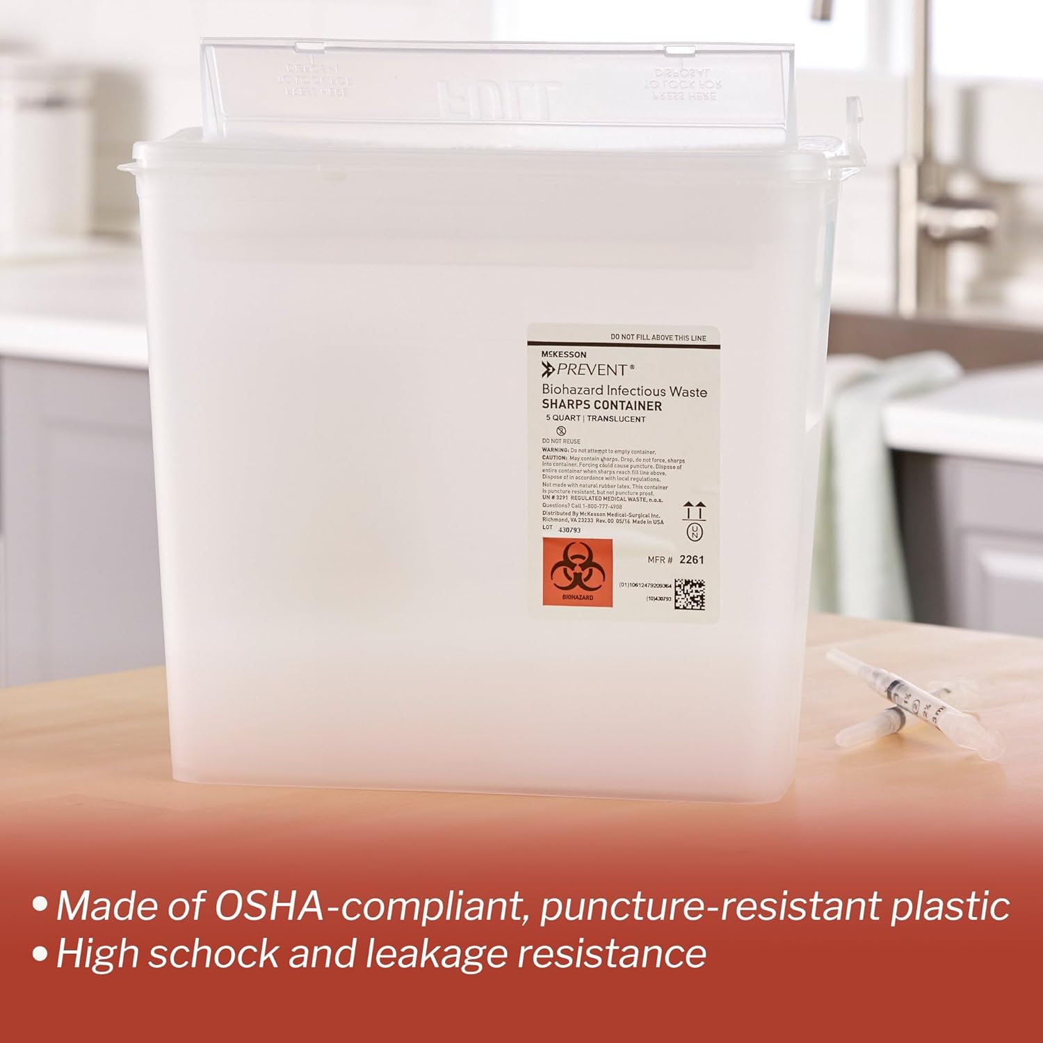 Mckesson Prevent Sharps Container For Home Use, 5 Quart - For Biohazard Infectious Waste, Needle And Syringe Disposal - Translucent, Touchless Lid - White, 1 Count