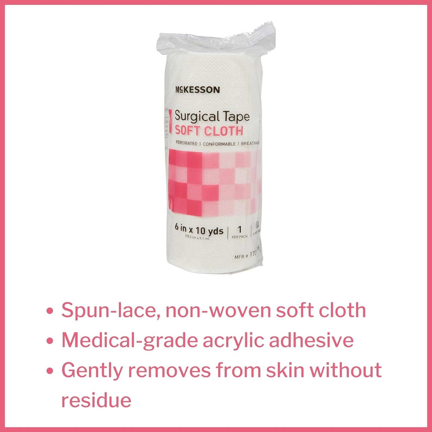 Spun-lace, non-woven cloth can secure any swelling pattern, use for a variety of surgical and medical applications, breathable medical tape is comfortable to useMedical grade tape comes with perforations at every 2 inches for easy tearing, tape is made with fabric and is gently removed from the skin without leaving virtually any residue behindProduct is lightweight and packaged in an roll for easy carryingMade with medical-grade acrylic, this latex-free cloth surgical tape can be used by people with latex sensitivityMeasures 6 inches by 10 yards, which is big enough for covering most wounds or for multiple applications