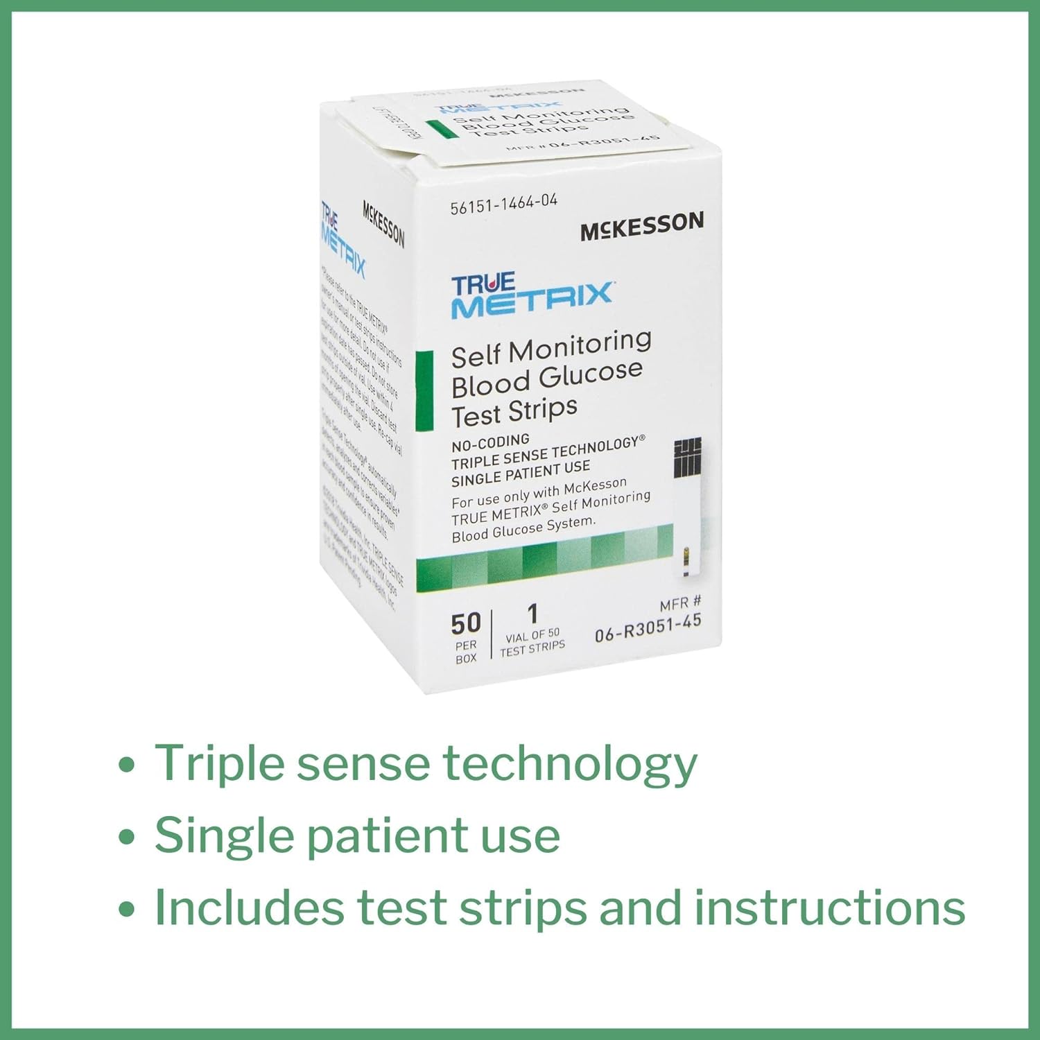 Mckesson True Metrix Self-Monitoring Blood Glucose Test Strips, 50 Strips, 3 Packs, 150 Total