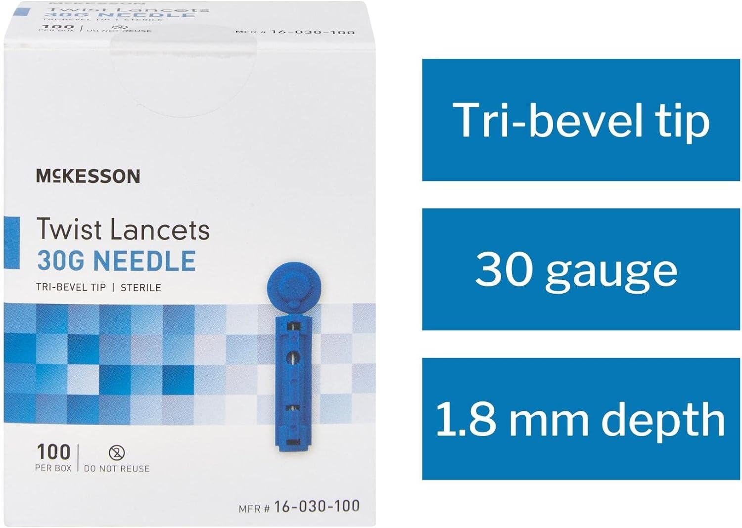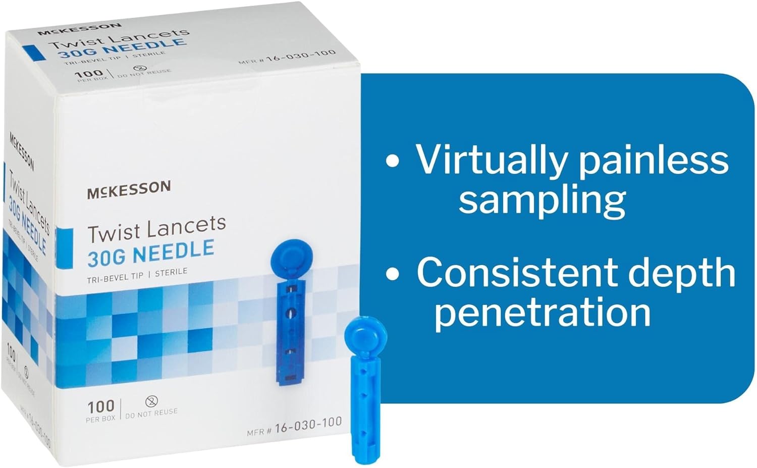 Mckesson Twist Lancets, 30 Gauge, Push Button Activation, 1.8 Mm Depth, 100 Count, 5 Packs, 500 Total