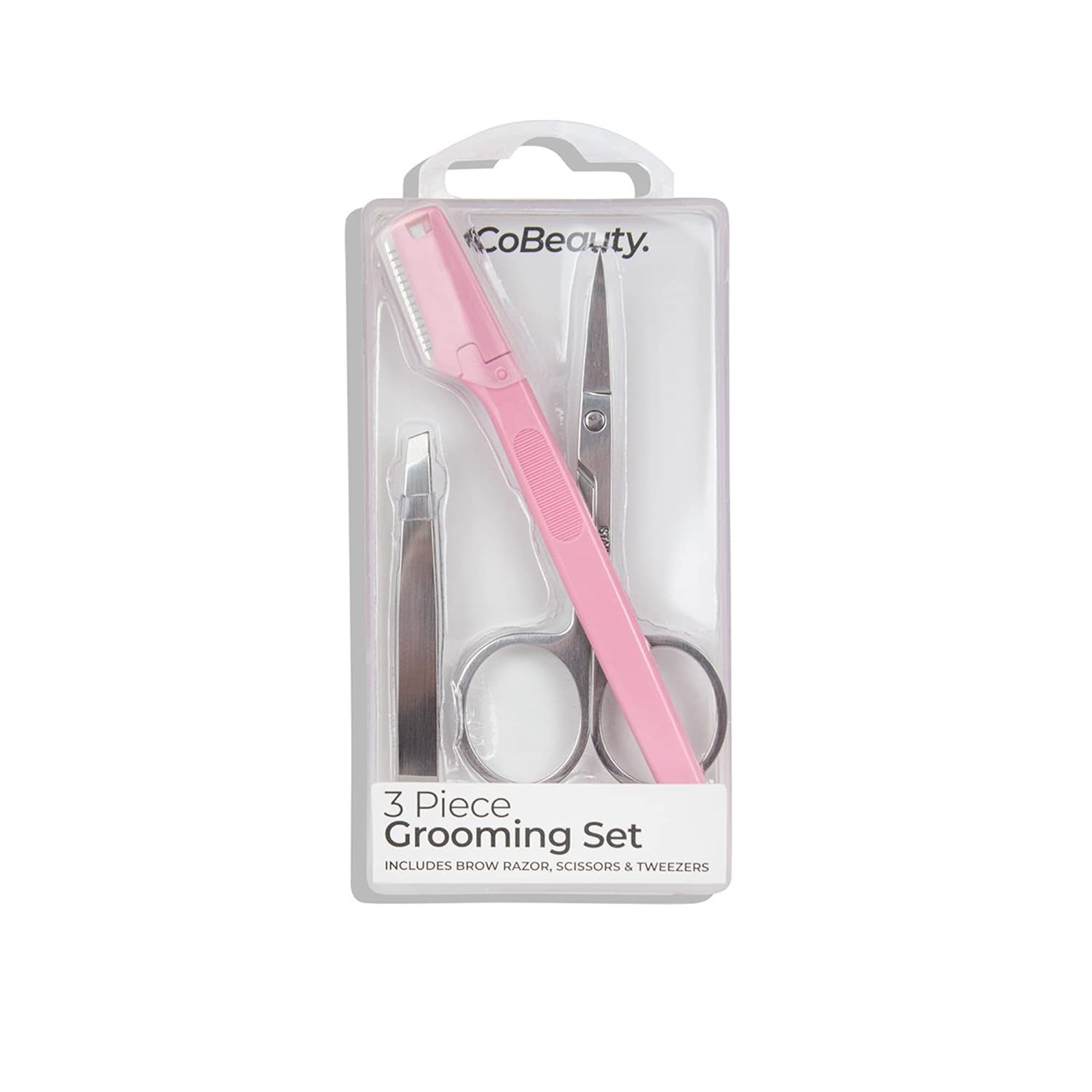 MCoBeauty Grooming Kit - Stainless Steel Brow Razor, Tweezers And Scissors - Remove Unwanted Hair And Shape Brows - Resulting In A Smooth Finish - Travel Friendly, All In One Kit - 3 Pc