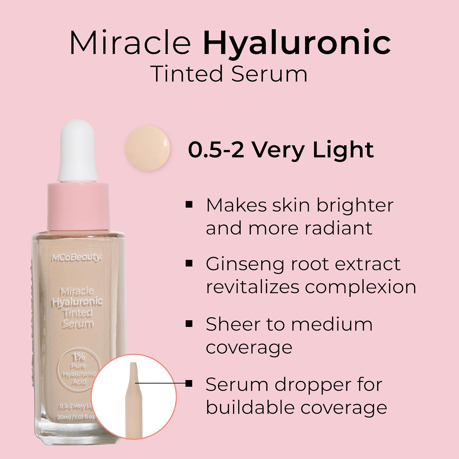 Mcobeauty Miracle Hyaluronic Tinted Serum, 0.5-2 Very Light, Hydration & Glow For Radiant Skin, Vegan, Cruelty Free Cosmetics