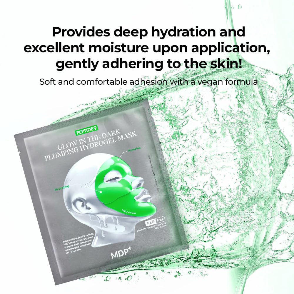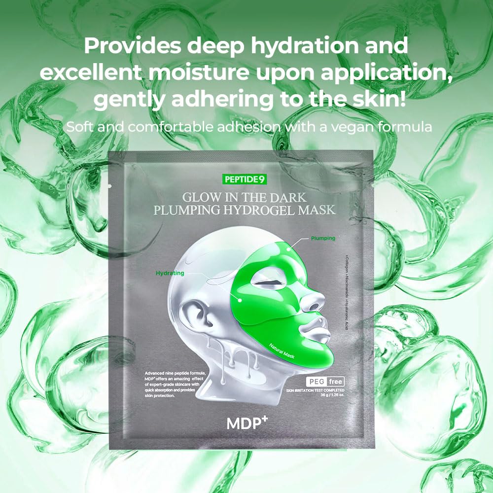 Mdp Peptide 9 Glow In The Dark Plumping Hydrogel Mask, Hydrating, 1.26 Oz/36 G×5Ea, Collagen For Elasticity, Pore Minimizing, Plumping Wrinkles