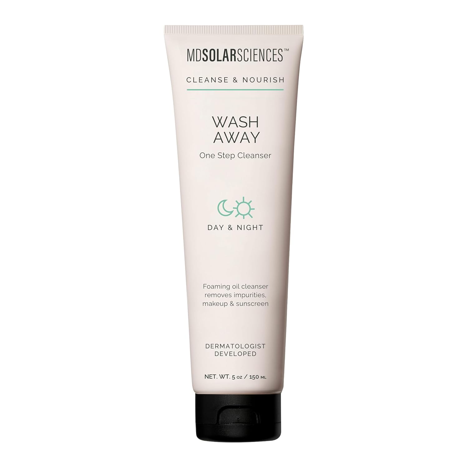 MDSolarSciences Wash Away One Step Foaming Cleanser Removes Impurities, Makeup & Sunscreen, Dermatologist Developed Vegan Formula with Hyaluronic Acid, Pineapple Extract, Aloe & Vitamin B5