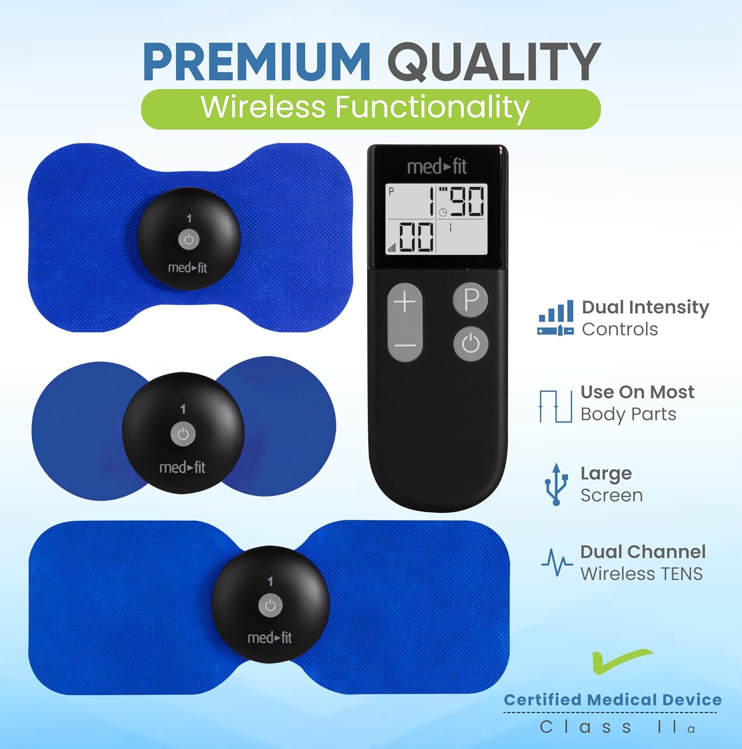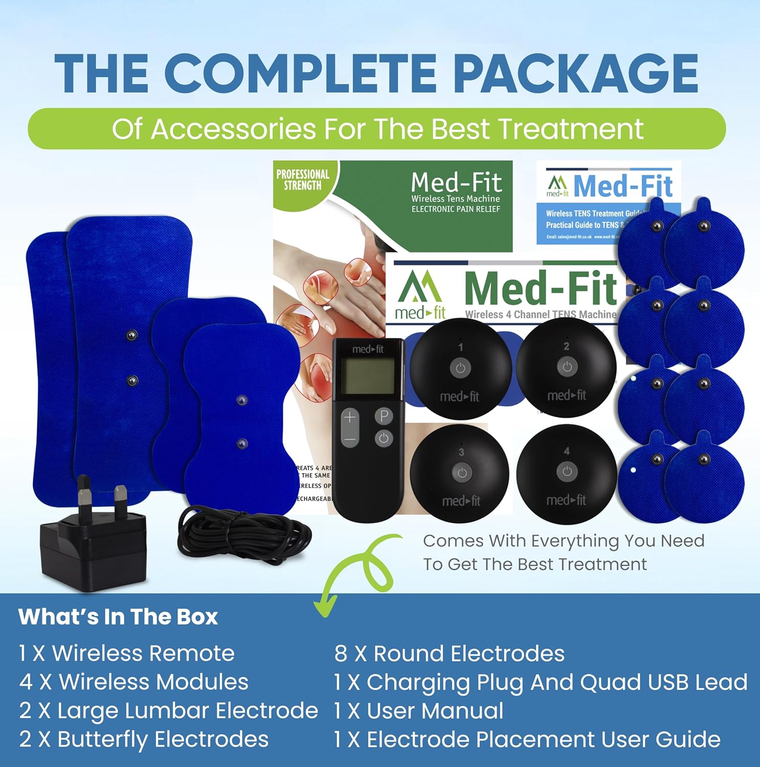Med-Fit 4 Channel Wireless Tens Machine For Pain Relief, Muscle Relaxation & Pain Management - Treat Up To 4 Areas Simultaneously For Full Body Treatment - Professional Strength & Rechargeable