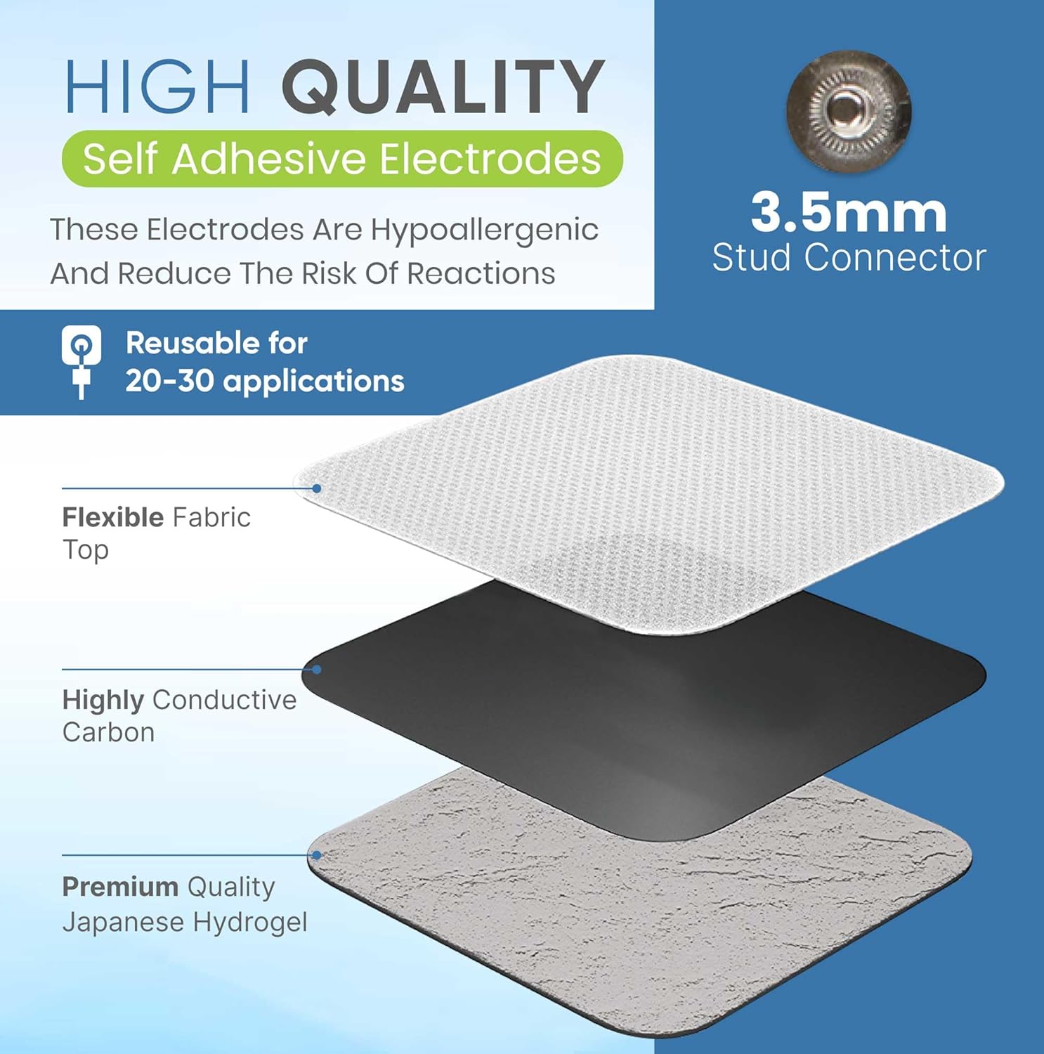 Med-Fit Self-Adhesive Pads - Universal Studded Electrode Pads To Fit Virtually All Tens Machines - Target Small Or Large Painful Areas - 16 Pack. Stud Size 3.5Mm