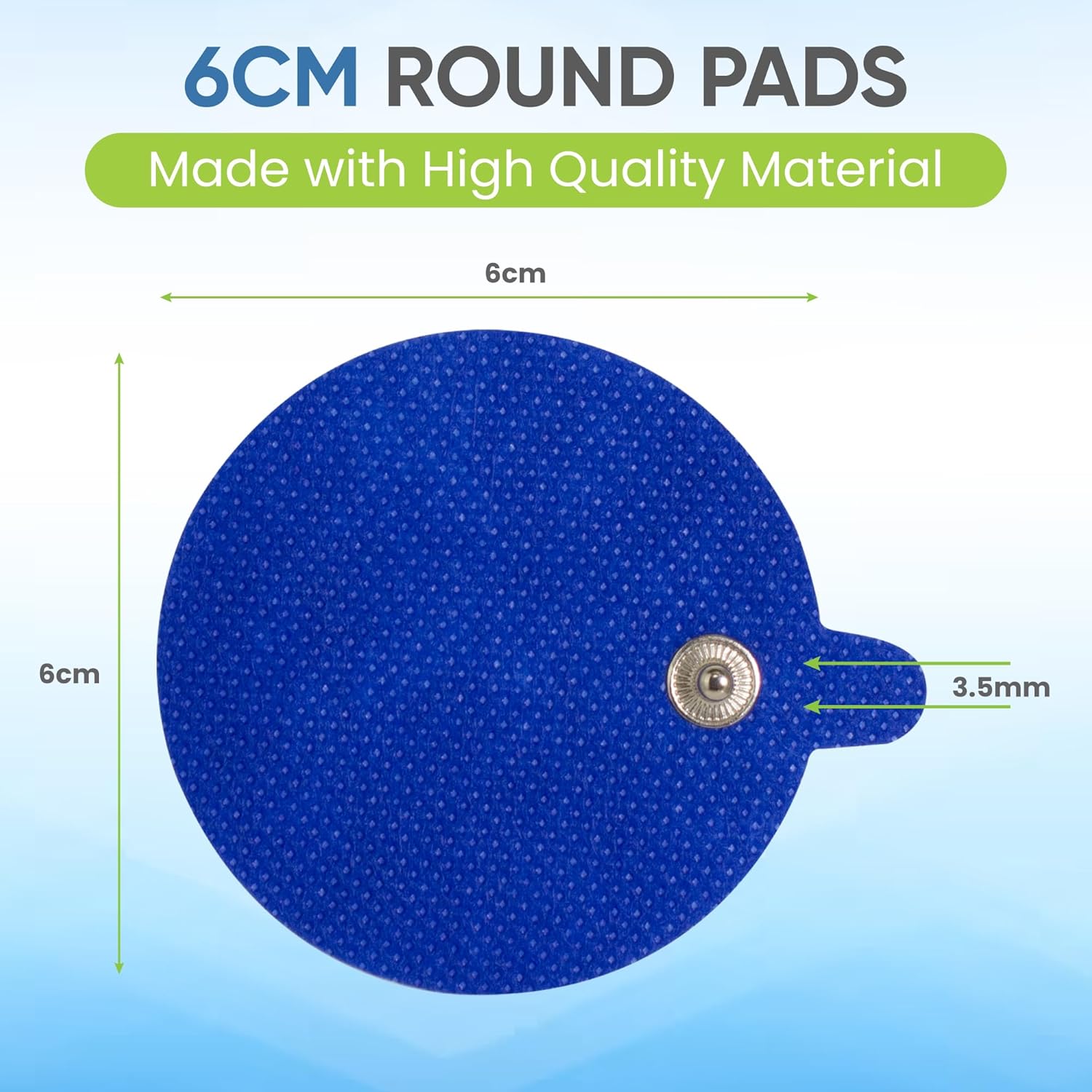 Med-Fit Tens Electrodes - 60Mm Round Stud Replacement Electrode Pads - Pack Of 8 Tens Pads In Total (Blue, 6 Cm Round)