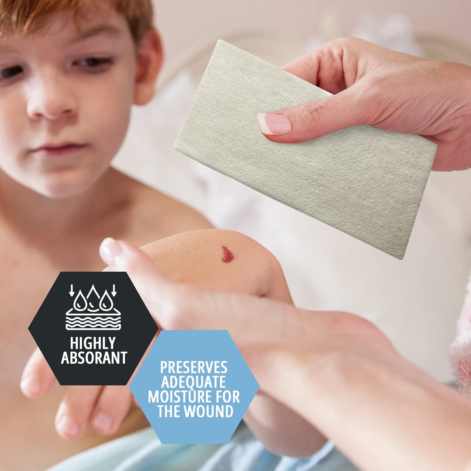 HIGH ABSORBENCY: Experience the high absorbency of our wound dressing pads, thanks to the natural seaweed fiber layer properties. Our dressing is up to 20 times more absorbent than gauze, making it not only more comfortable but also cost-effective