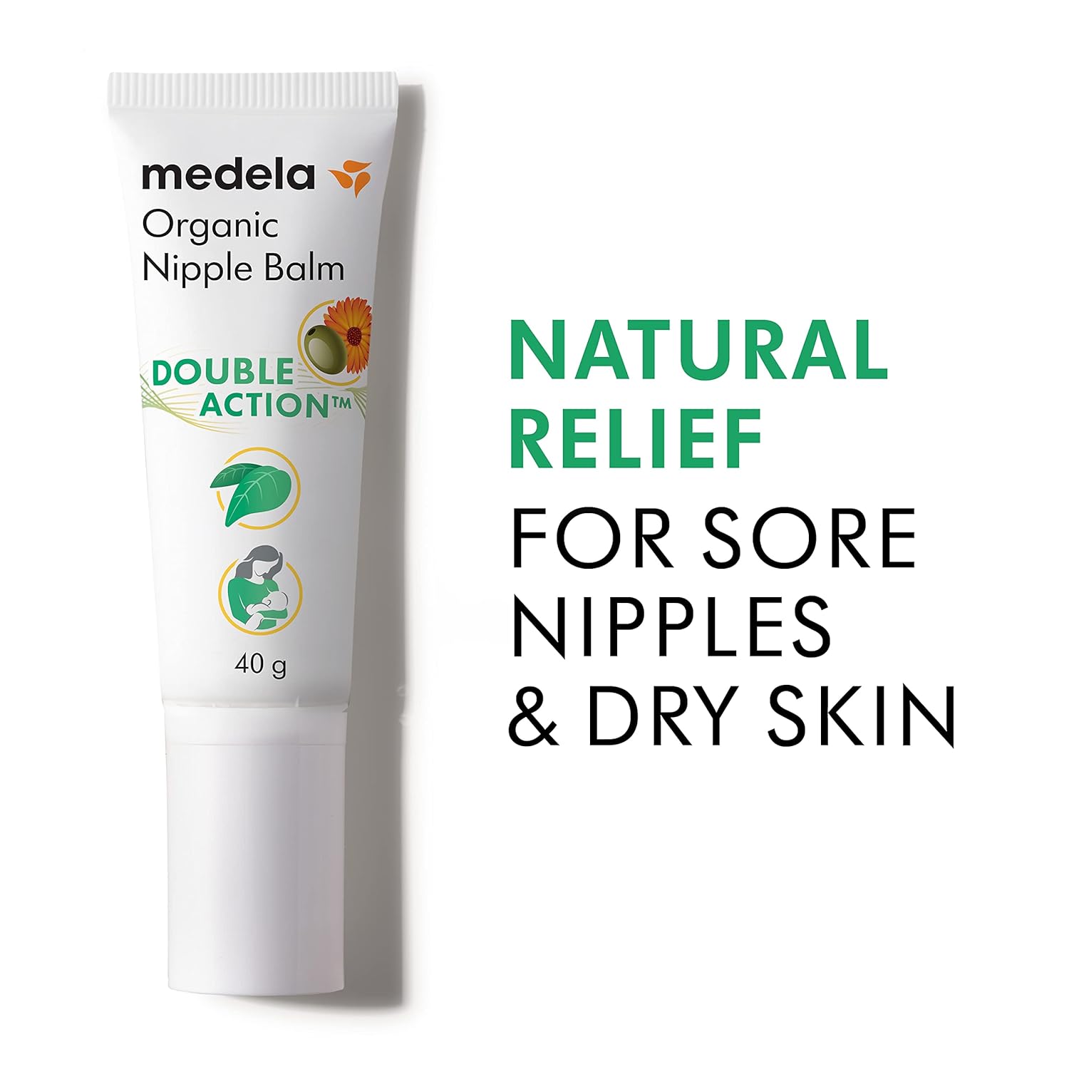 About this item SAFE FOR YOUR BABY: No need to remove Medela Organic Nipple Balm cream before breastfeeding SOOTHES AND RELIEVES SORE NIPPLES: Features the soothing Double Action of olive oil and calendula for natural relief of sore nipples and dry skin ORGANIC & VEGAN, CLEAN LABEL: Only 4 natural ingredients and formulated without fragrance, parabens, additives, alcohol, BHT, palm-oil or any GMO. Hypoallergenic and dermatologically tested. Cosmos Organic certified and vegan certified. HYGIENIC & PRECISE DOSAGE: Airless pump tube protects the product from oxidation and exposure to the outside elements. Lightweight texture, with a non-sticky, non-grainy formula that's easy to apply and spread. HOSPITAL BAG ESSENTIAL: Medela organic nipple balm is a breastfeeding and postpartum essential that should be included in every maternity bag. Whether you're at home or on the go, you can use this balm to soothe your nipples and keep them moisturized and comfortable. HOW TO APPLY: Wash hands prior to use. Apply a pea-sized amount to the entire nipple area after each feeding or as needed. See more product details,SAFE FOR YOUR BABY: No need to remove Medela Organic Nipple Balm cream before breastfeeding,SOOTHES AND RELIEVES SORE NIPPLES: Features the soothing Double Action of olive oil and calendula for natural relief of sore nipples and dry skin,ORGANIC & VEGAN, CLEAN LABEL: Only 4 natural ingredients and formulated without fragrance, parabens, additives, alcohol, BHT, palm-oil or any GMO. Hypoallergenic and dermatologically tested. Cosmos Organic certified and vegan certified,HYGIENIC & PRECISE DOSAGE: Airless pump tube protects the product from oxidation and exposure to the outside elements. Lightweight texture, with a non-sticky, non-grainy formula that's easy to apply and spread,HOSPITAL BAG ESSENTIAL: Medela organic nipple balm is a breastfeeding and postpartum essential that should be included in every maternity bag. Whether you're at home or on the go, you can use this balm to soothe your nipples and keep them moisturized and comfortable,HOW TO APPLY: Wash hands prior to use. Apply a pea-sized amount to the entire nipple area after each feeding or as needed