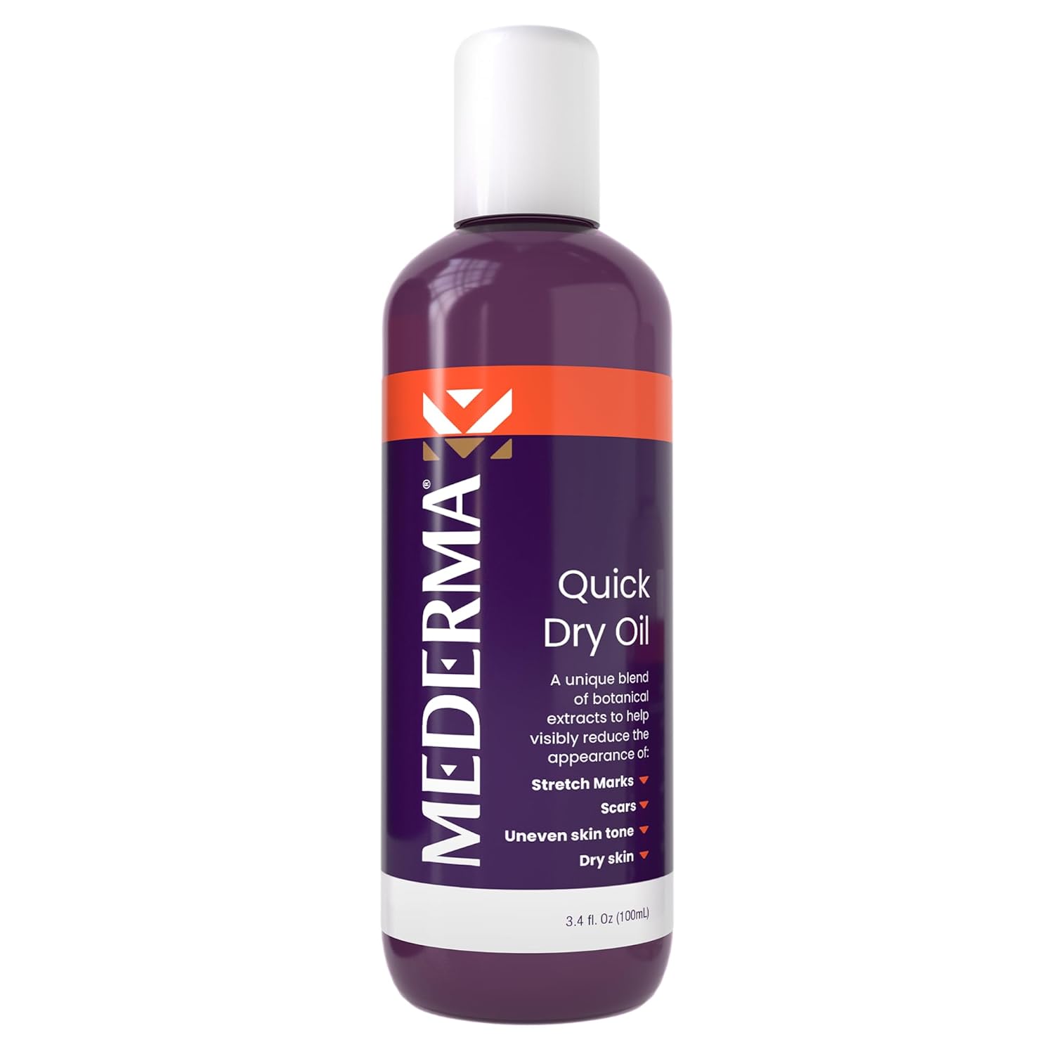 Soft, hydrated, healthier looking skin can be yours with Mederma Quick Dry Oil. The unique blend of natural botanical extracts penetrates into the skin to help visibly reduce the appearance of stretch marks and scars. It’s the only oil that combines Cepalin with natural botanicals in a fast-absorbing, paraben, fragrance, dye and mineral oil free formulation. For nourishing support, it contains a complex blend of natural oils and botanicals: Sweet Almond oil helps to nourish and moisturize. Rose Hip oil, rich in Vitamin C, is a natural skin brightener which helps improve skin tone. Sunflower oil helps to maintain skin's natural moisture level. Coconut oil helps to seal in moisture while creating luxuriously soft, hydrated skin. Chamomile and Ginger extracts help soothe and reduce blotchiness .Each application of this fast-absorbing oil helps to improve the appearance of scars, stretch marks, uneven skin tone and dry skin. Trust Mederma, the #1 recommended brand of scar treatments among Doctors, Pharmacists, Pediatricians, Dermatologists and Plastic Surgeons (Of U.S. physicians and pharmacists surveyed by an independent market research firm),HEALTHIER LOOKING SKIN: The unique blend of natural botanical extracts penetrates into the skin to help visibly reduce the appearance of stretch marks and scars,NATURAL BOTANICAL EXTRACTS: Enjoy the complex blend of natural oils and botanicals, with Cepalin, Sweet Almond oil, Rose Hip oil, coconut oil, sunflower oil, Chamomile and Ginger extracts to soothe, moisturize and nourish,REDUCE THE APPEARANCE OF STRETCH MARKS AND SCARS: Nourish and moisturize your skin while you help to improve the appearance of scars, stretch marks, uneven skin tone and dry skin,FAST ABSORBING AND PARABEN FREE: Dries quickly after application; this oil is dye-free, paraben-free, fragrance-free and mineral oil-free,#1 RECOMMENDED BRAND: Mederma is the #1 Recommended Brand of Scar Treatments among Doctors, Pharmacists, Pediatricians, Dermatologists and Plastic Surgeons (Of U.S. physicians and pharmacists surveyed by an independent market research firm)