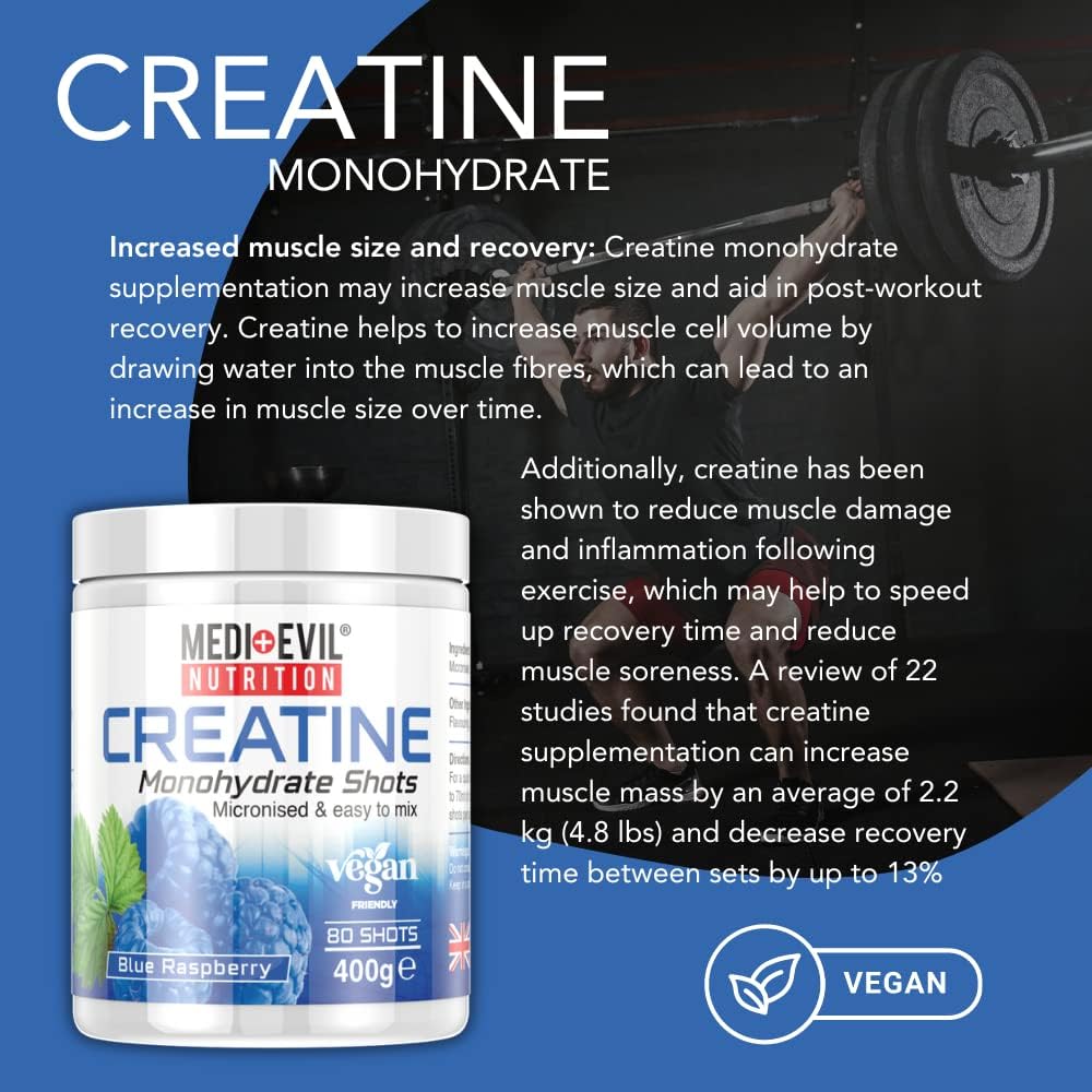 Medi-Evil Nutrition Creatine Monohydrate Shots Powder Vegan Friendly, Green Apple Flavour, 400G, 80 Servings, Micronised For Easy Mixing (Pack Of 1 Tub)