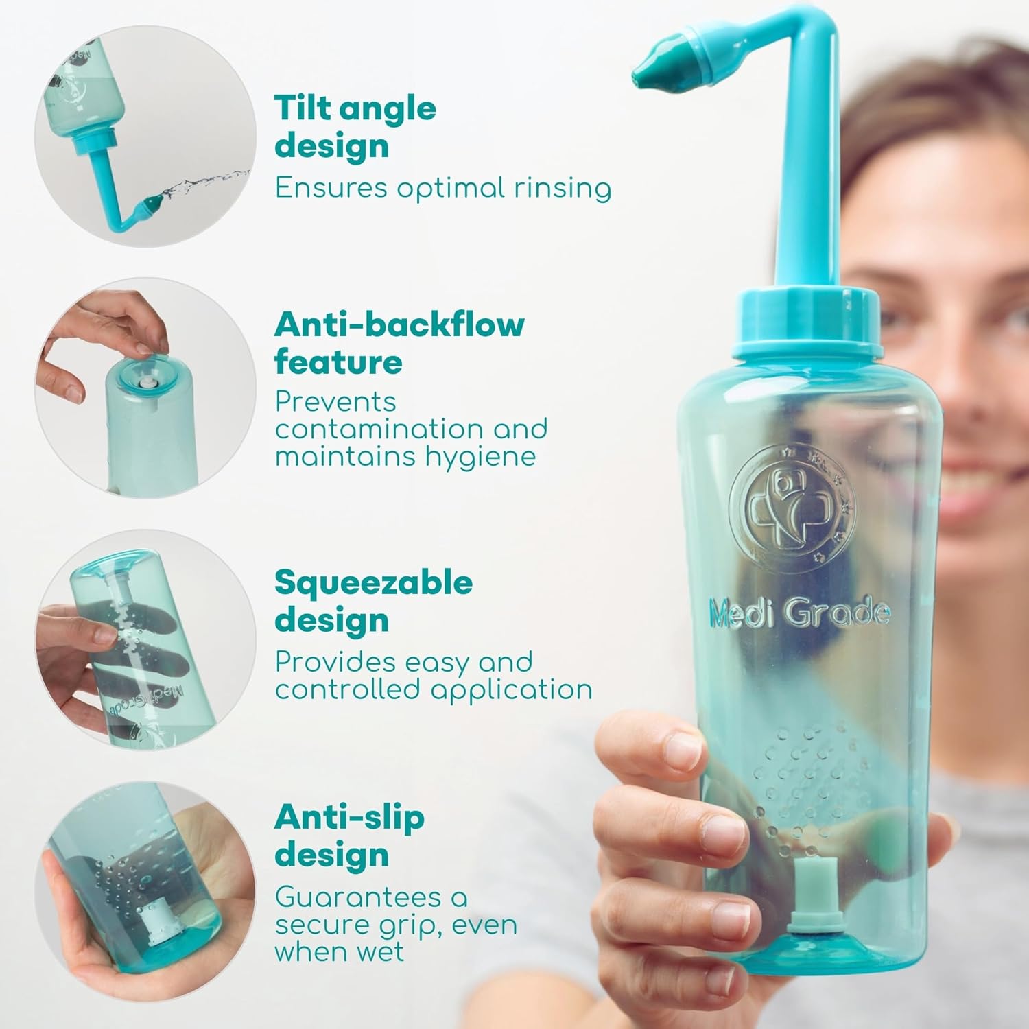 Medi Grade Nasal Irrigation Kit - 500Ml Nasal Rinse Bottle, 30X 4.5G Premixed Saline Nasal Rinse Salt Sachets - Deluxe Free-Flow Bottle Nose Cleaner For Improved Breathing And Nasal Hygiene