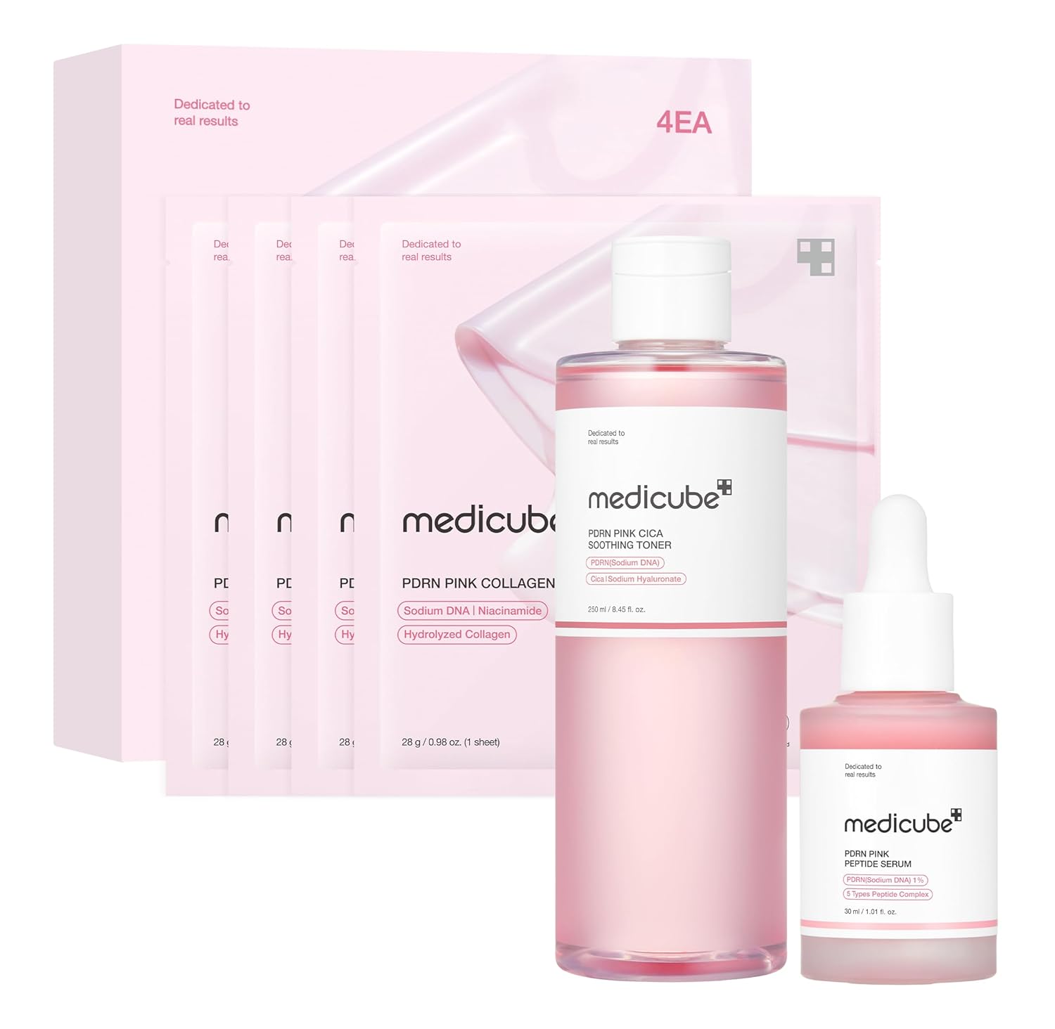Medicube Rose Pdrn Pink Trio Set : Medicube Pdrn Pink Peptide Serum & Toner & Jelly Gel Mask (1 Count (Pack Of 4))