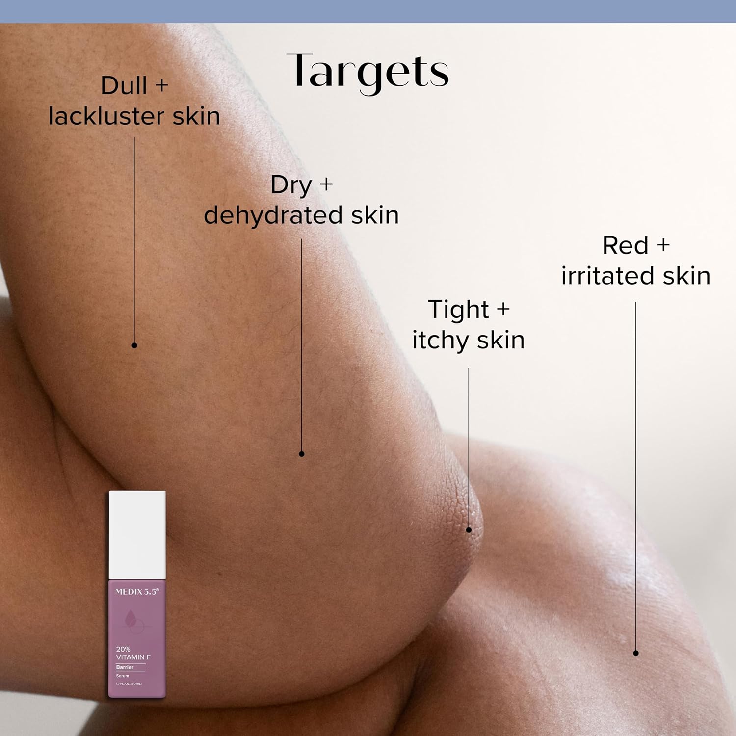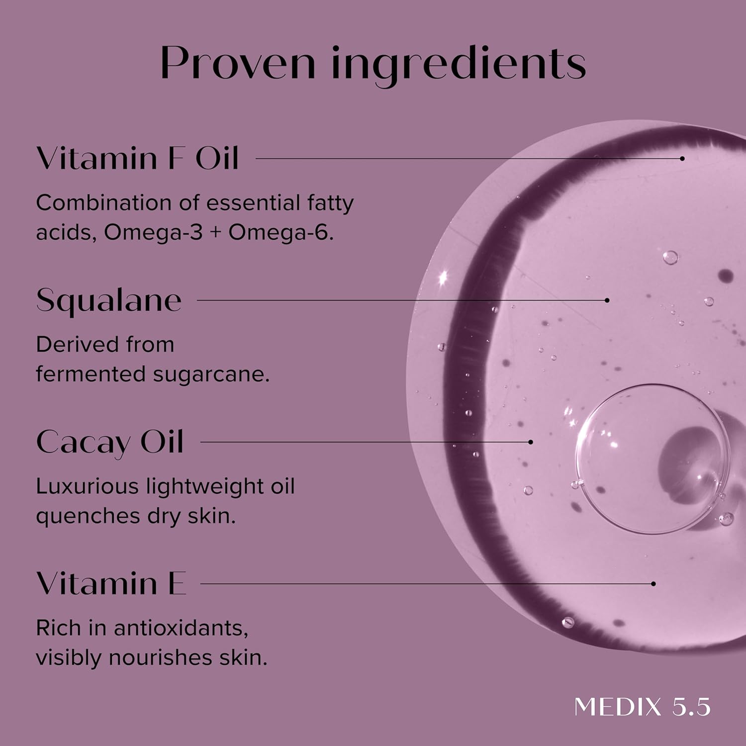 Medix Body & Face Moisturizer 20% Vitamin F Oil Hydrating Body Booster & Face Serum | Concentrated Vitamin F + Vitamin E Oil Super Serum For Skin Barrier | Crepey Skin Treatment, 1.7 Fl Oz