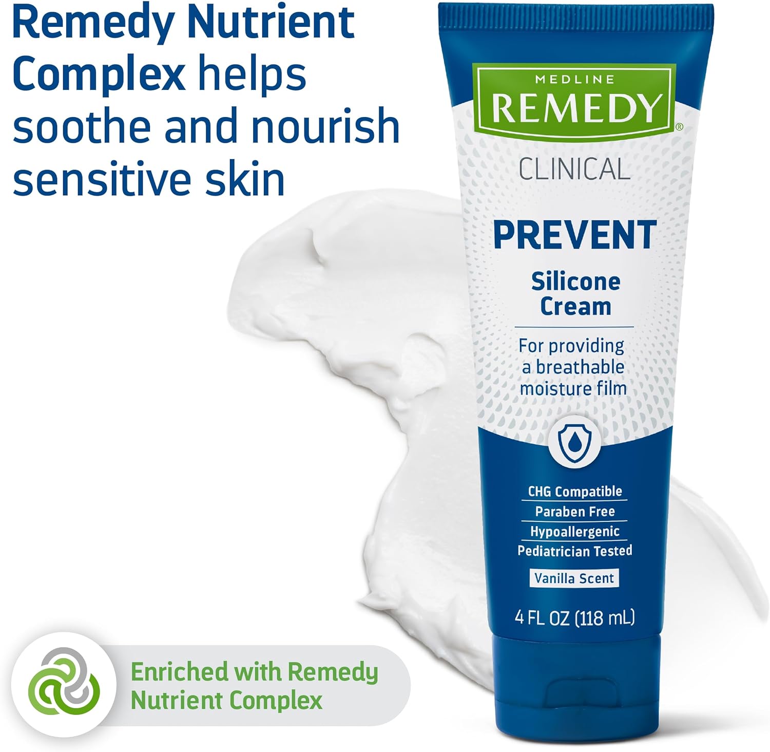Medline Remedy Clinical Silicone Cream (4 Oz Tube), 12 Count, Vanilla Scent, Breathable Film, Soothing, Moisturizing, Nourishing, Hydrating Skin Care, For Cracked, Chapped, Sensitive Skin